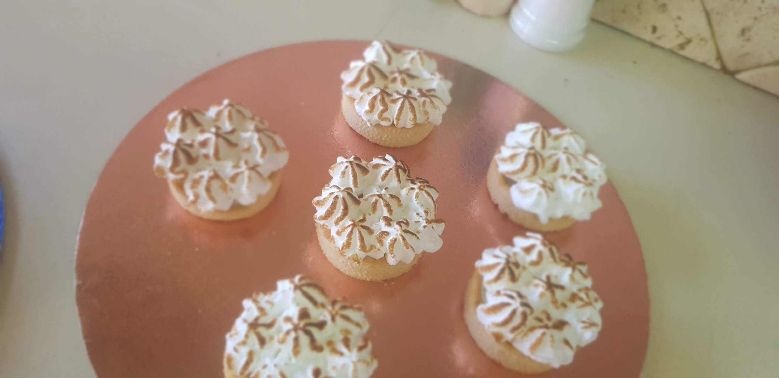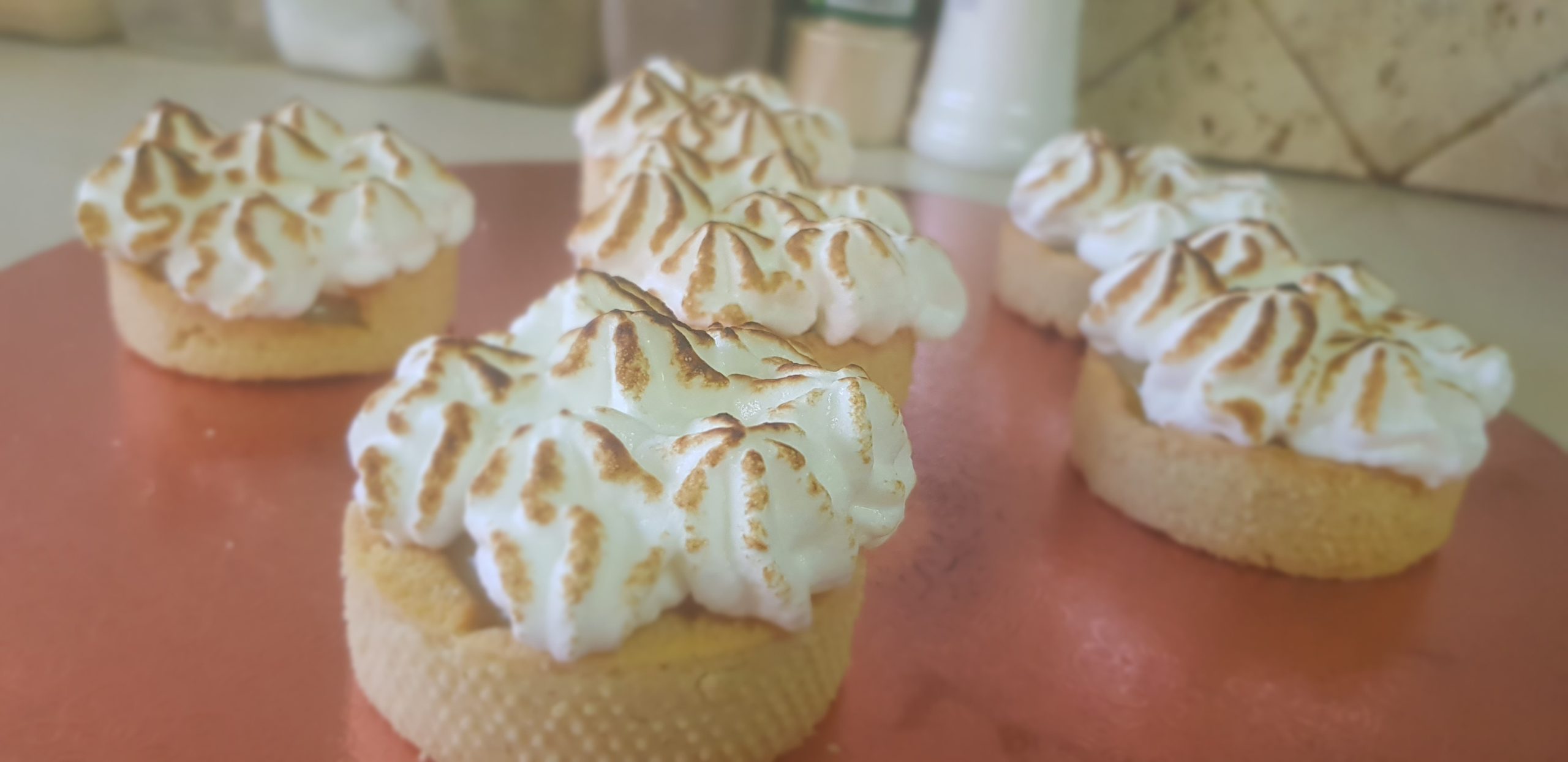 Battre les blancs en neige ferme puis ajouter le sucre petit à petit ainsi que le jus de citron , mettre sur les minis tarte joliment avec une douille et bruler légèrement avec un petit chalumeau.