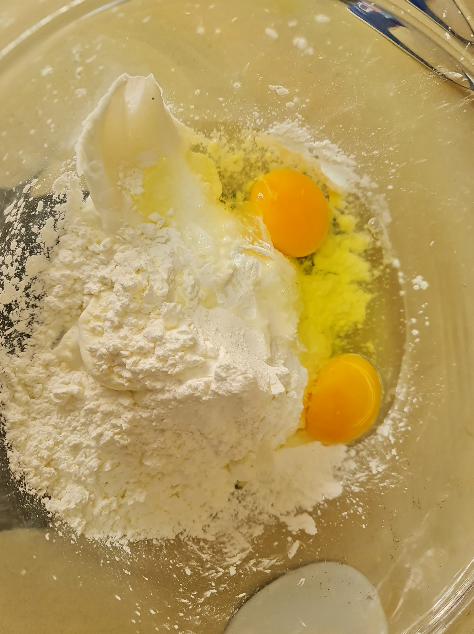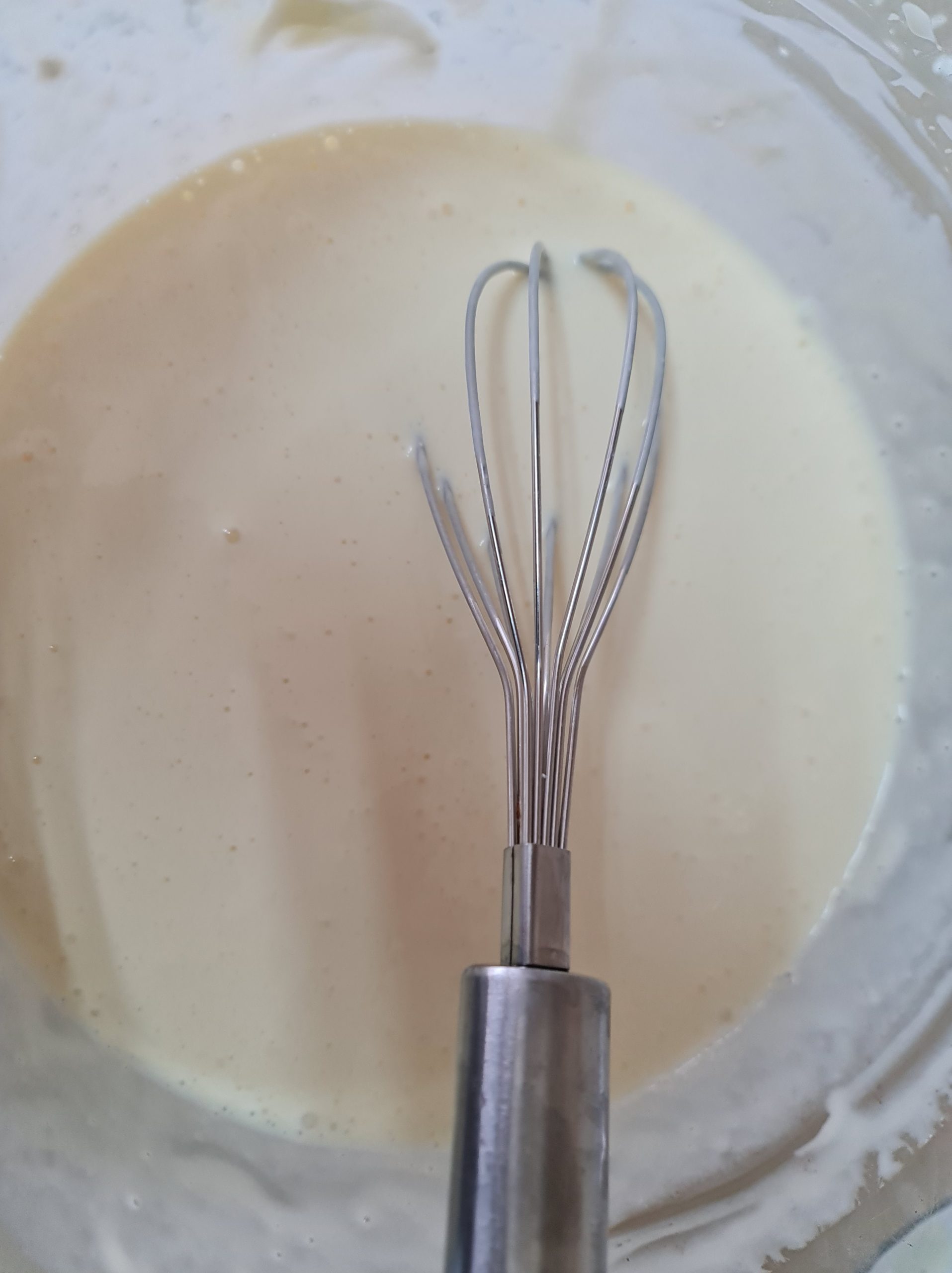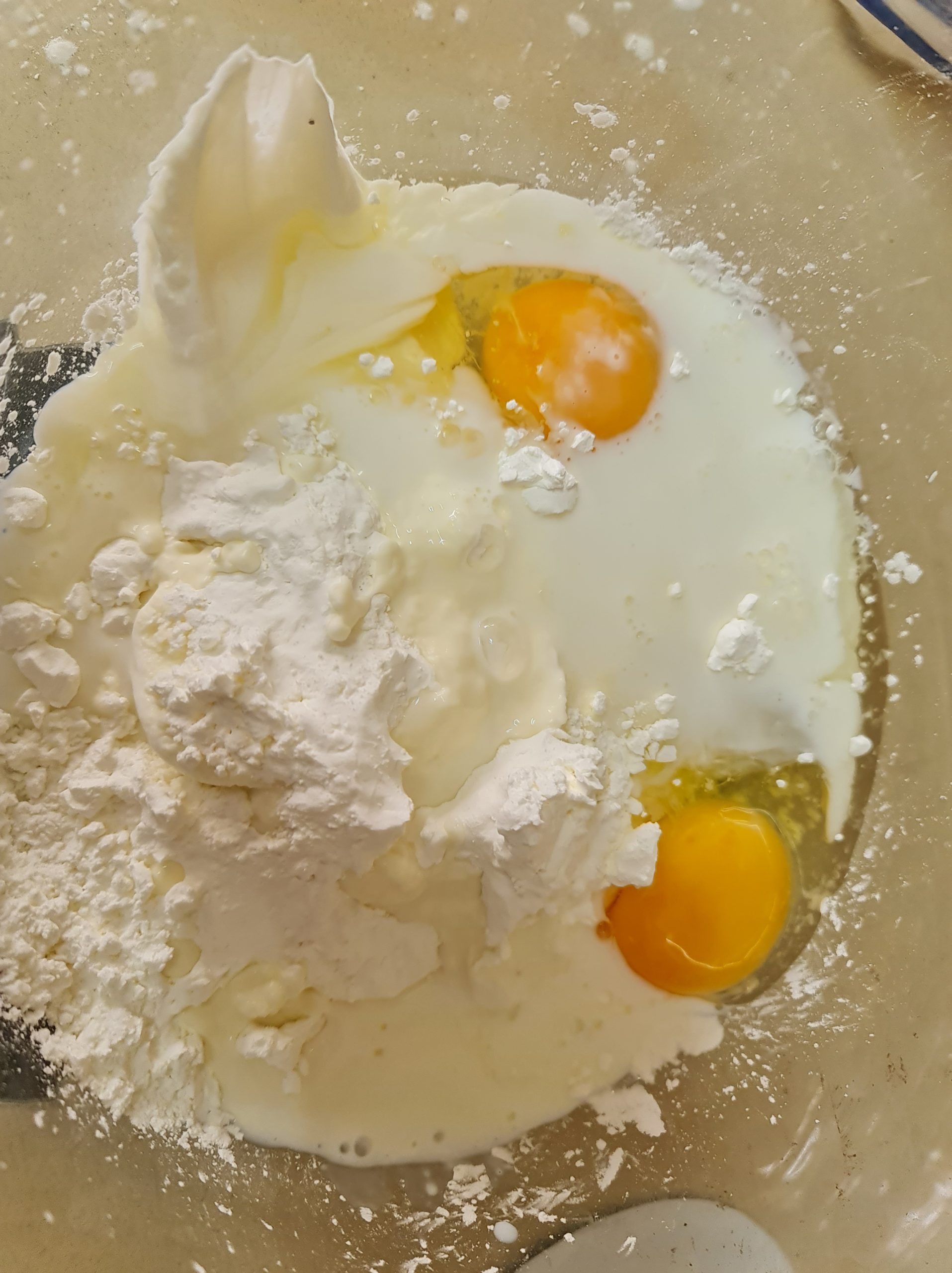 Mélanger le fromage blanc, la maïzena, l’œuf, le lait dans un bol profond. Mélanger bien jusqu’à obtenir une texture homogène.