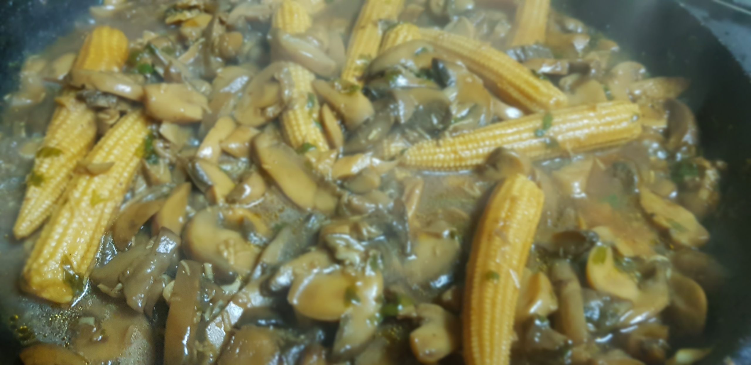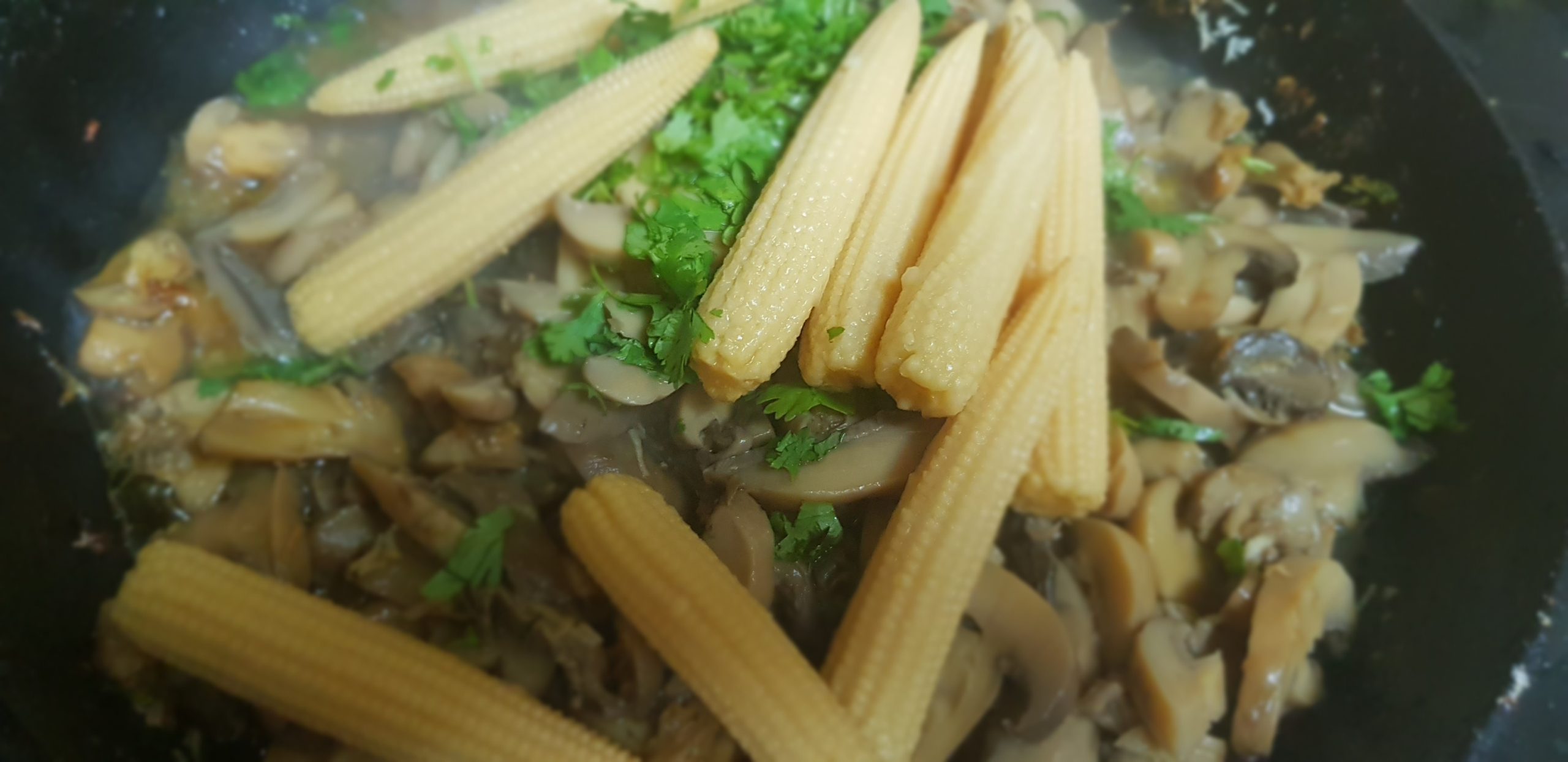 Ajouter la poudre de champignons et les épis de mais et bien mélanger et attendre une minute
