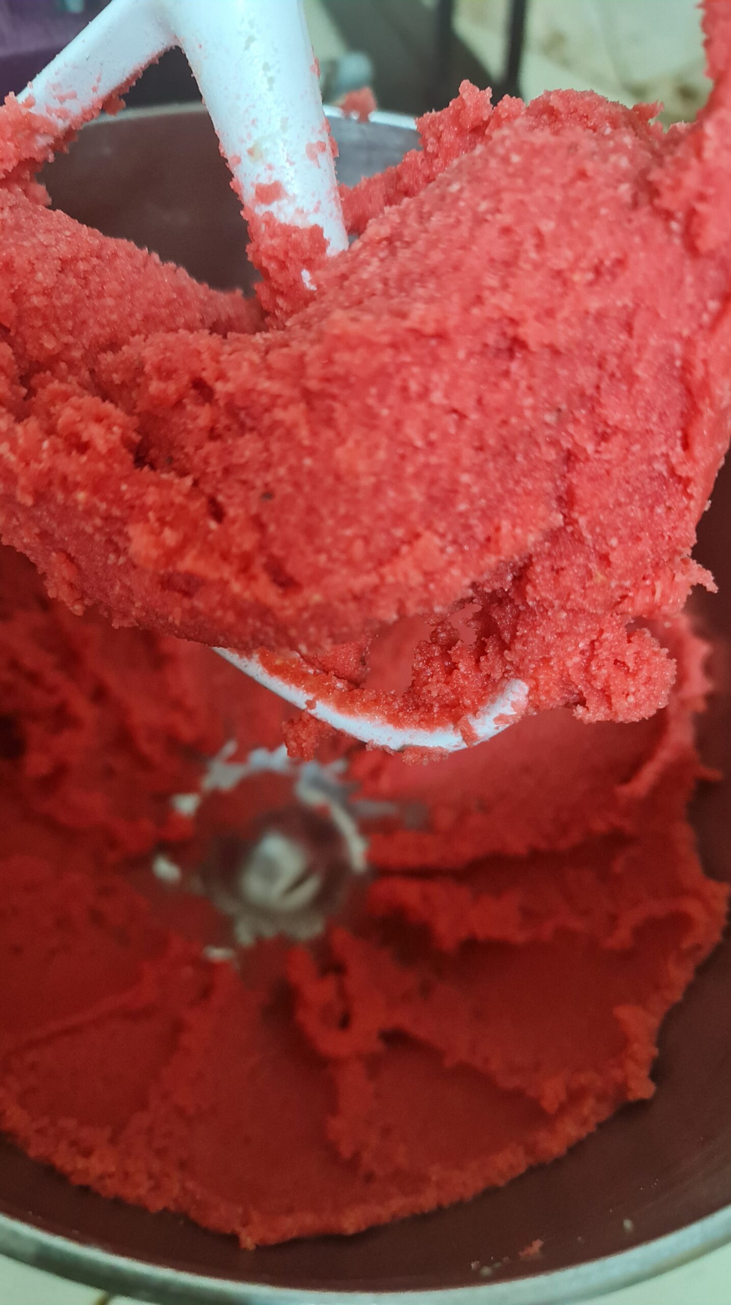 Avec le fouet plat, commencez à fouetter et versez progressivement le blanc d’oeuf tout en laissant le fouet tourner jusqu’à ce que la pâte soit ferme et homogène.