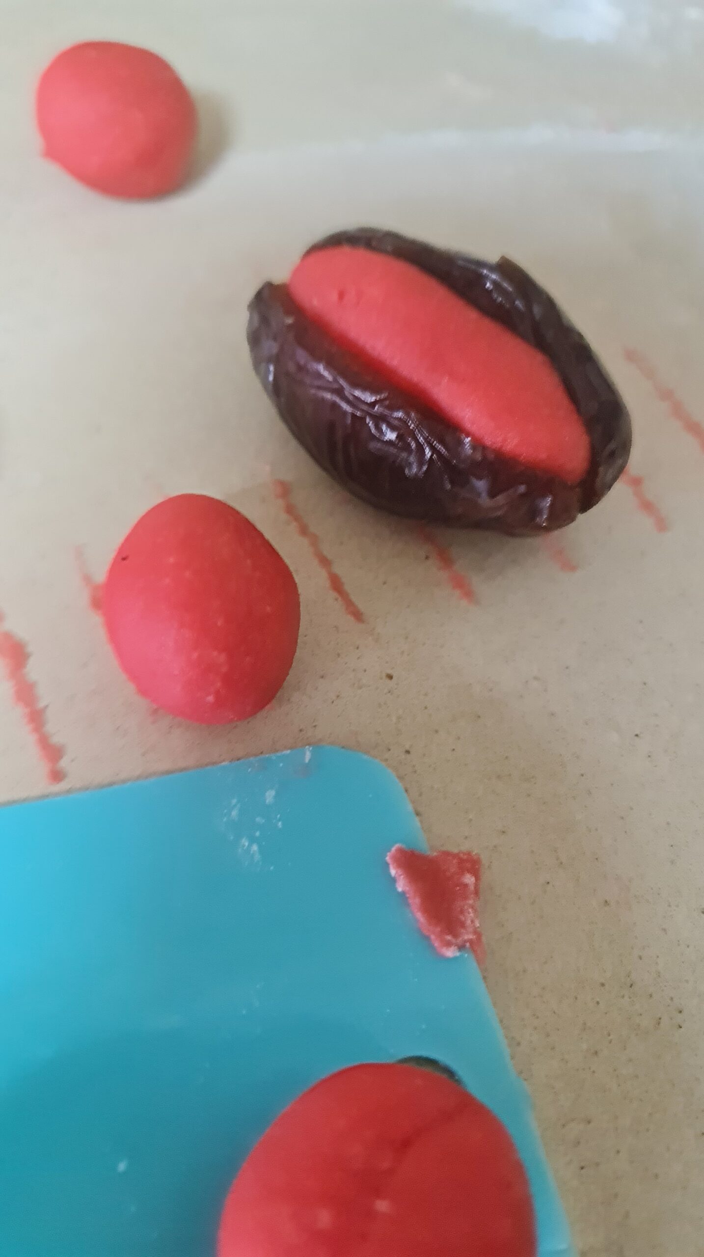 Pour colorer votre pâte d’amandes, ajoutez votre colorant en dosant la quantité en fonction de l’intensité souhaitée et malaxez bien la pâte entre vos mains pour que sa couleur soit homogène.