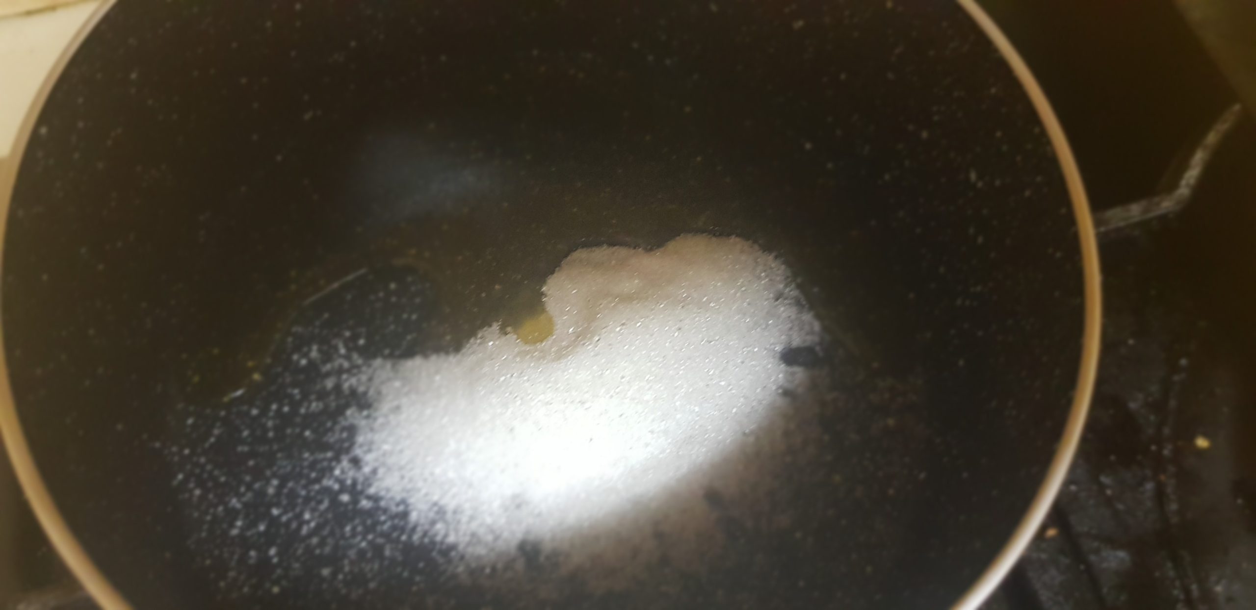 2 -Faire caraméliser le sucre, dès qu’il commence à fondre vous pouvez en ajouter un peu de sucre (25 gr sur les 200 gr)