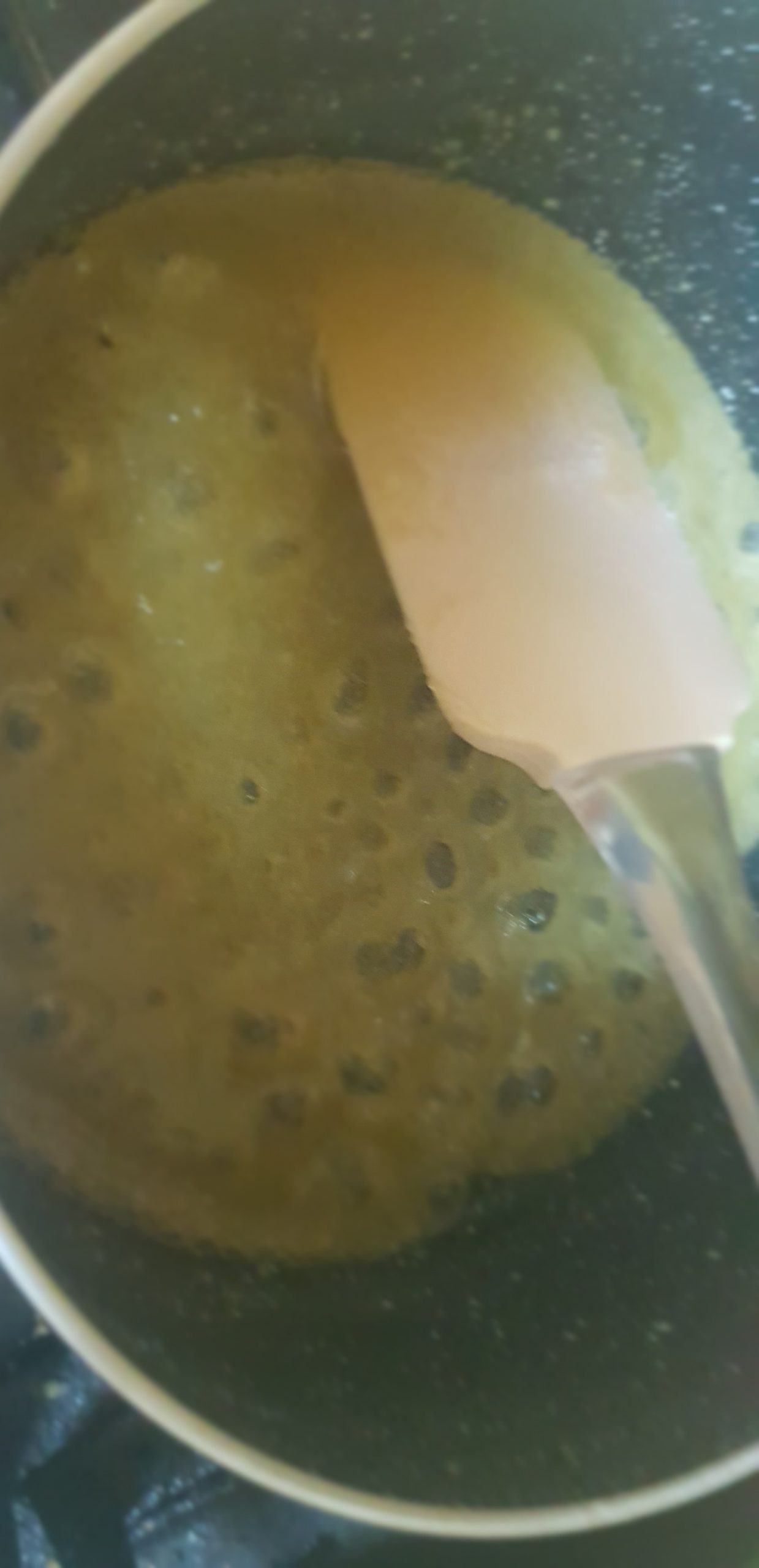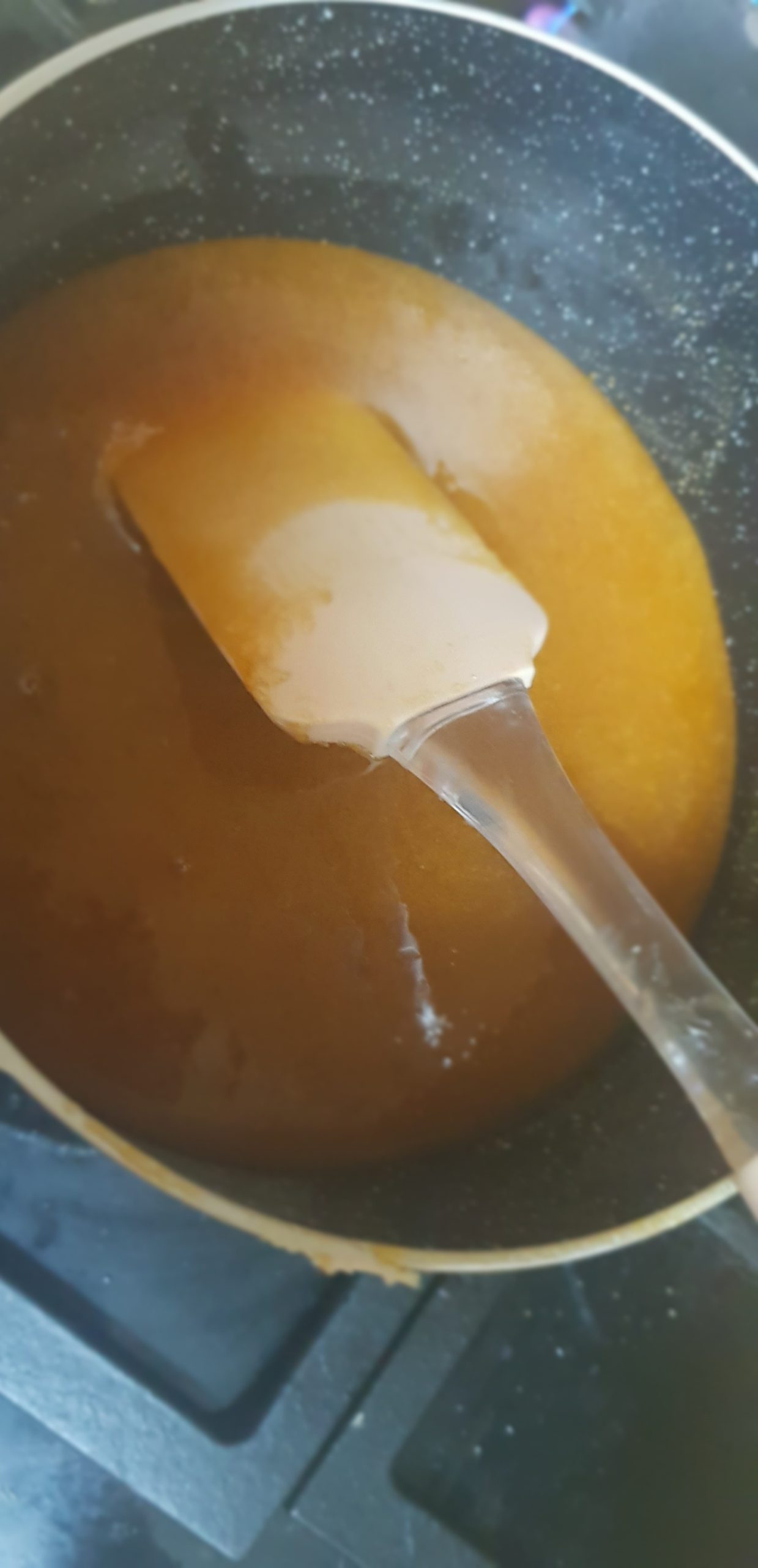 3 – Rajouter progressivement le sucre restant des 200 en gardant une caramel coloré mis pas brulé !
