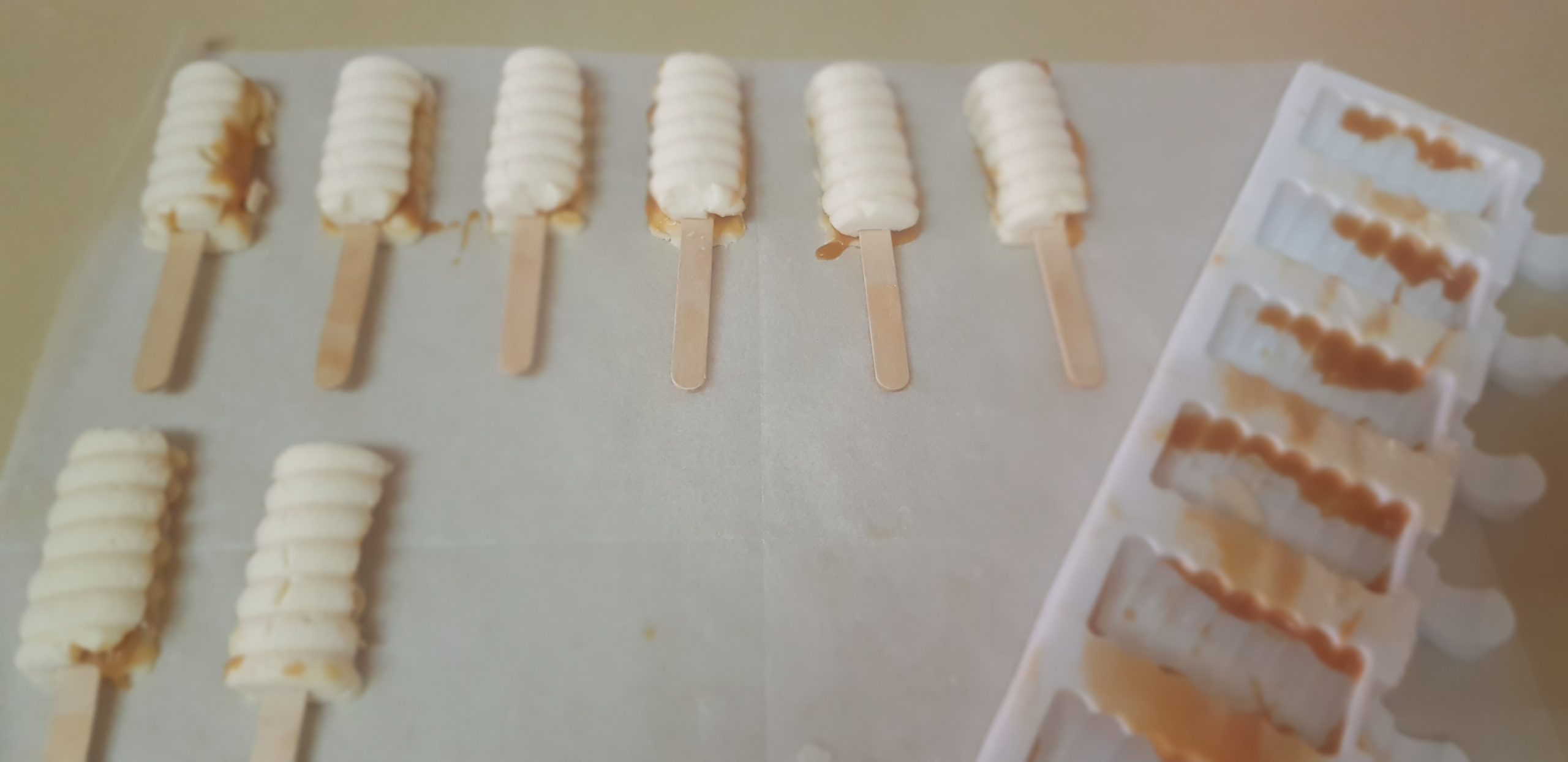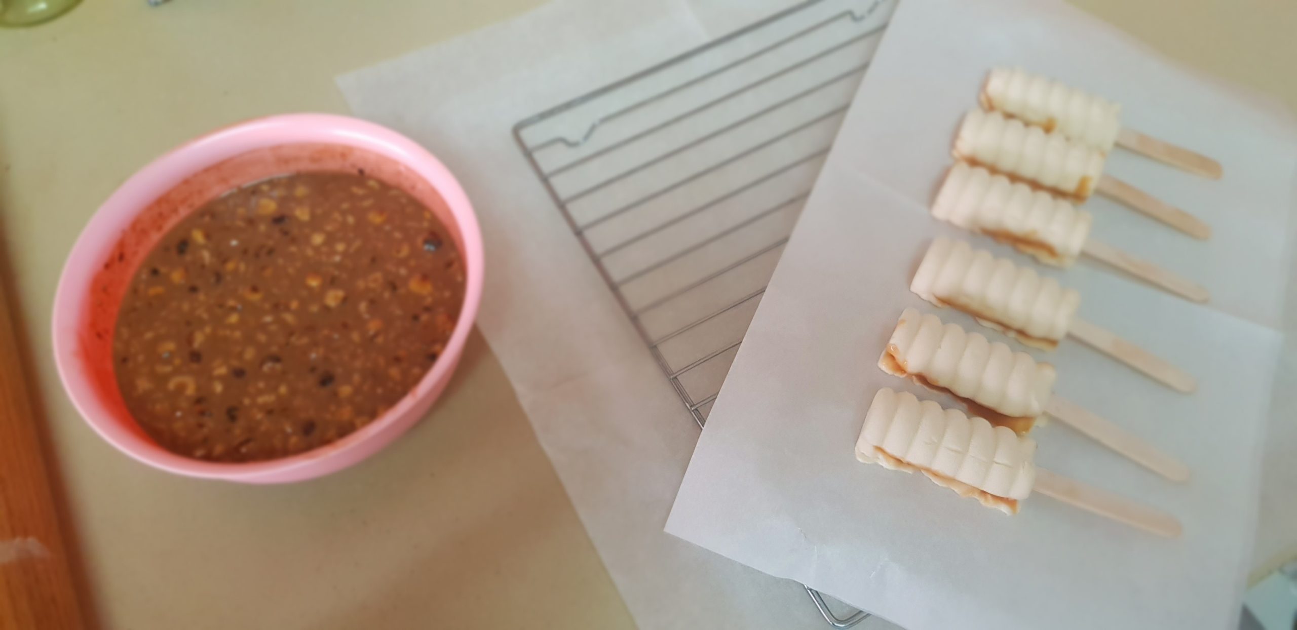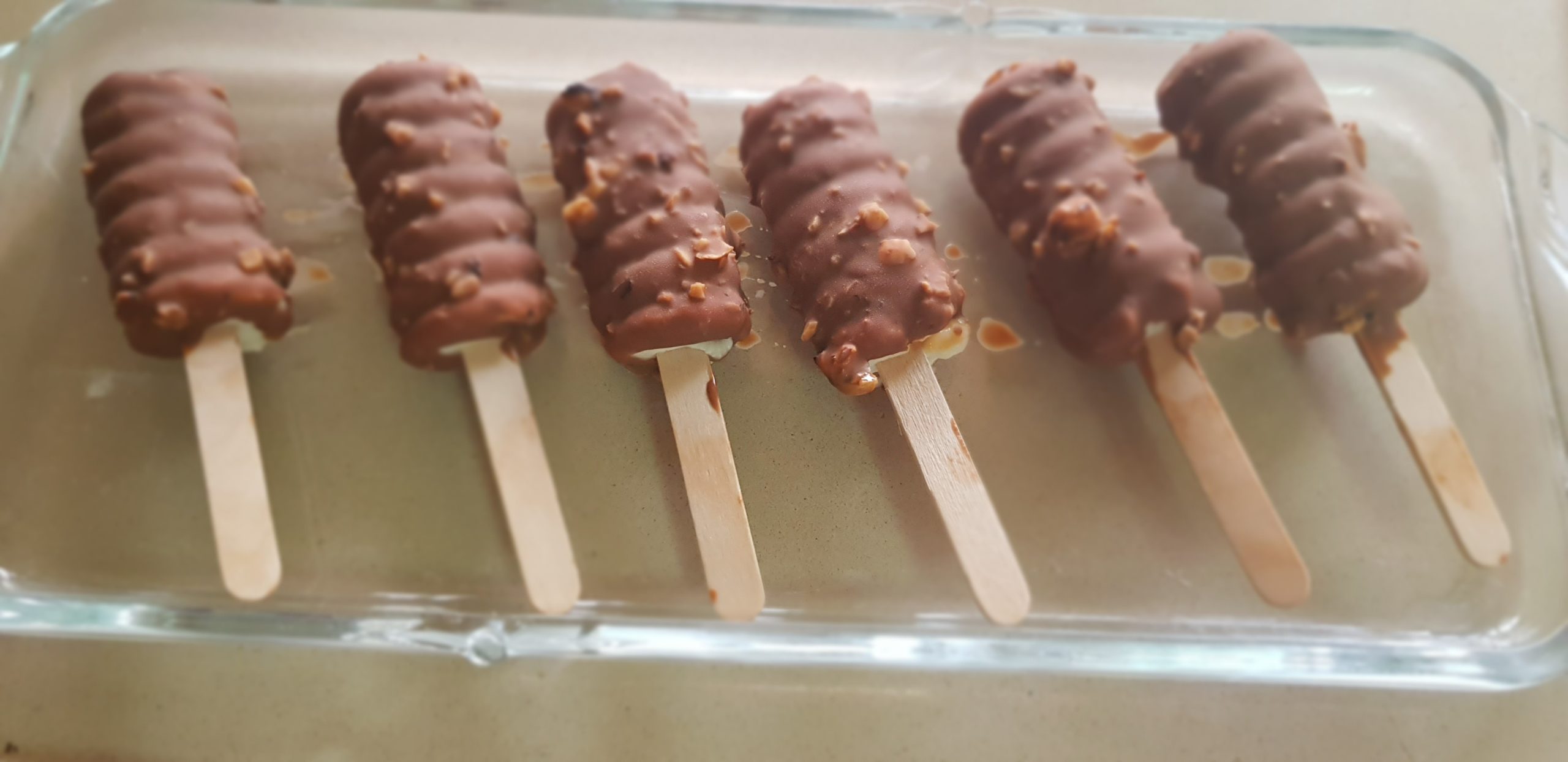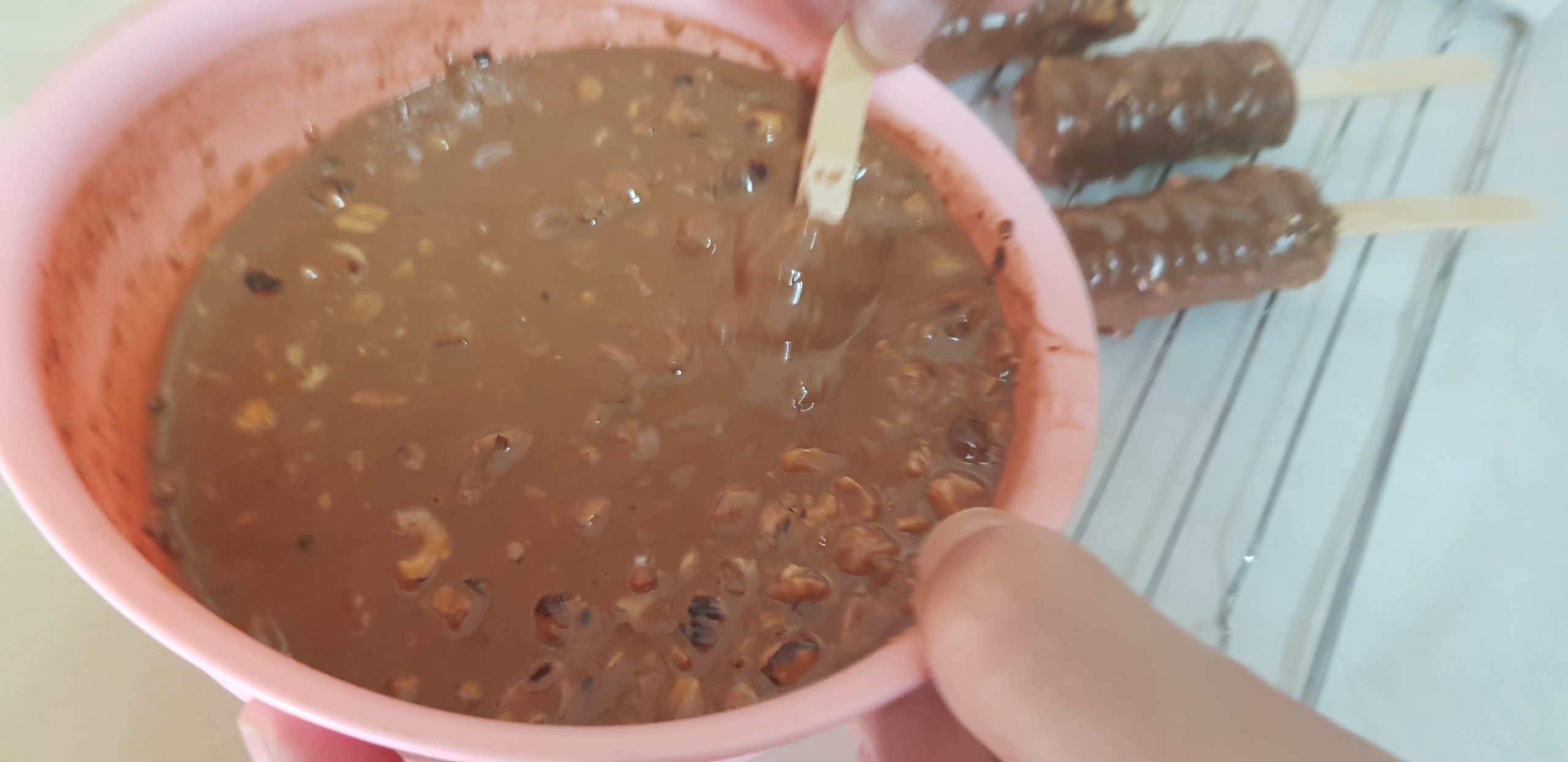 6 – Placer à nouveau les glaces au congélateur pour laisser prendre le chocolat.