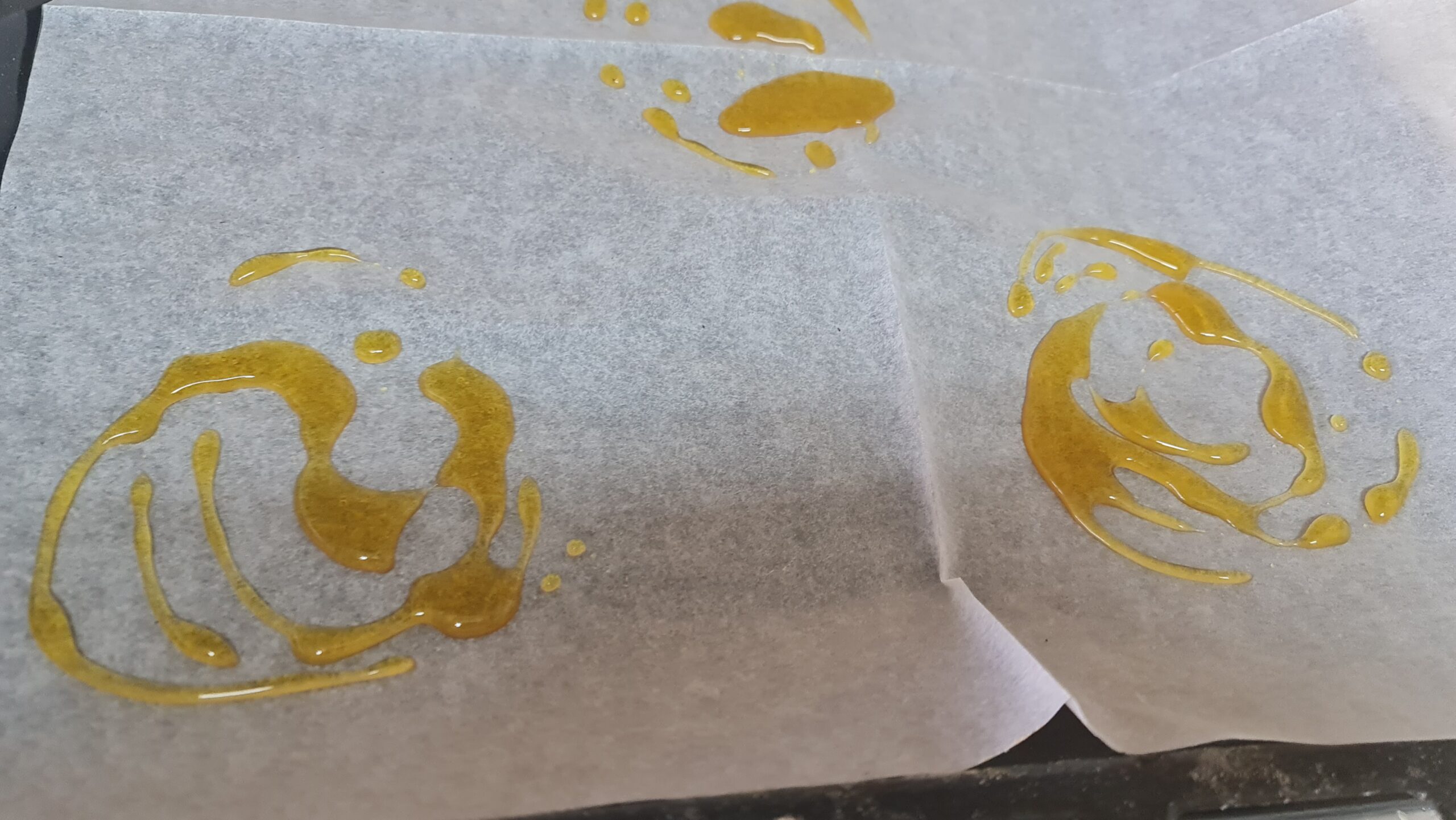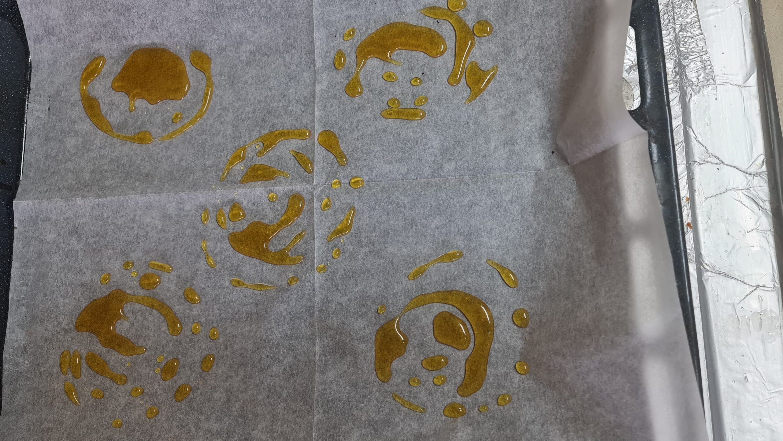 Verser du miel sur la plaque de cuisson – faire 4 cercles remplis.