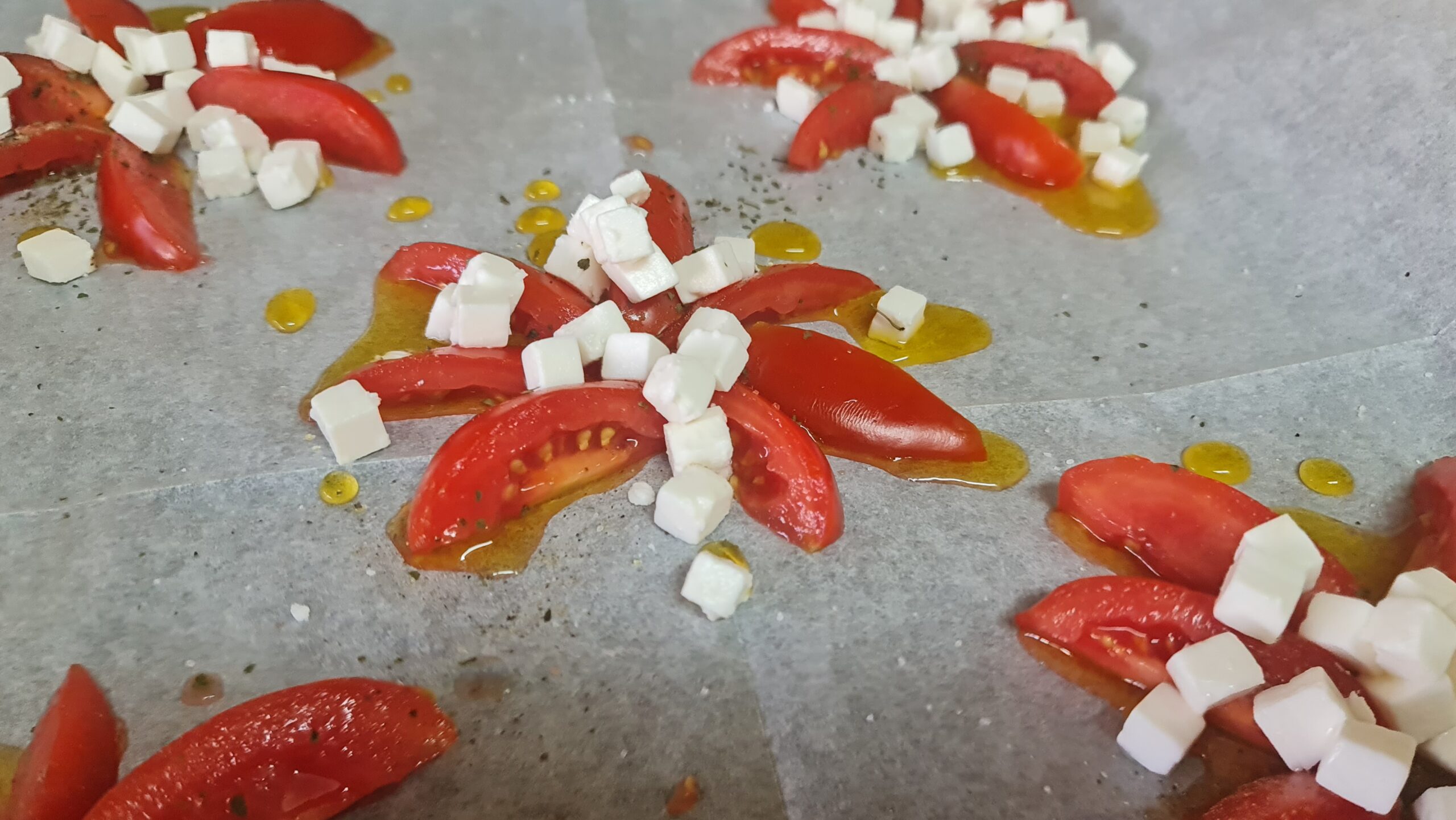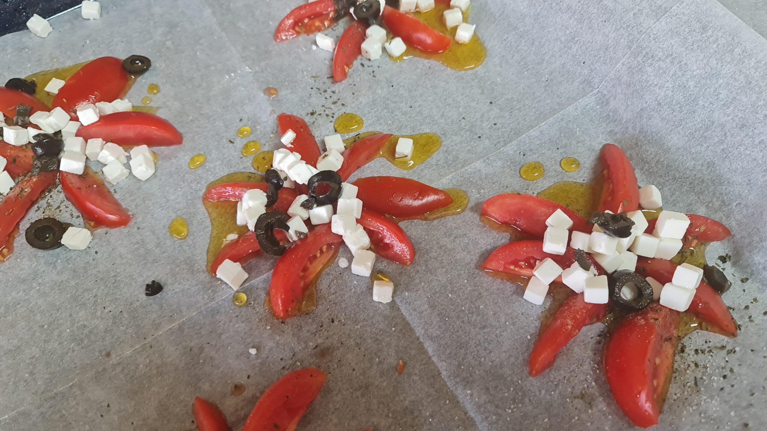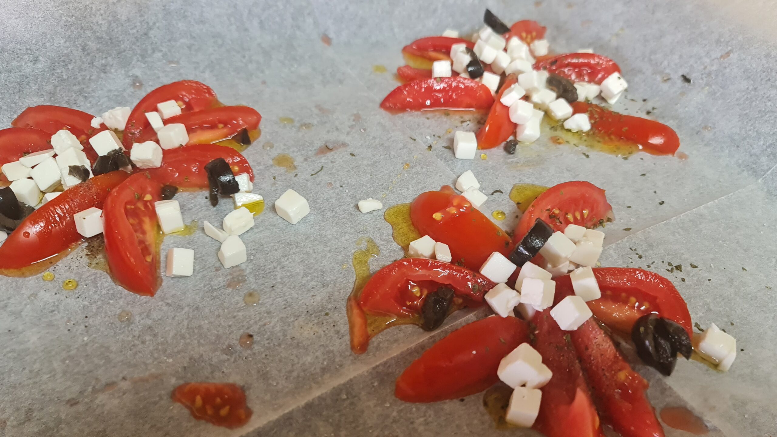 Déposer des demies tomates cerises avec la partie coupé face contre la plaque.