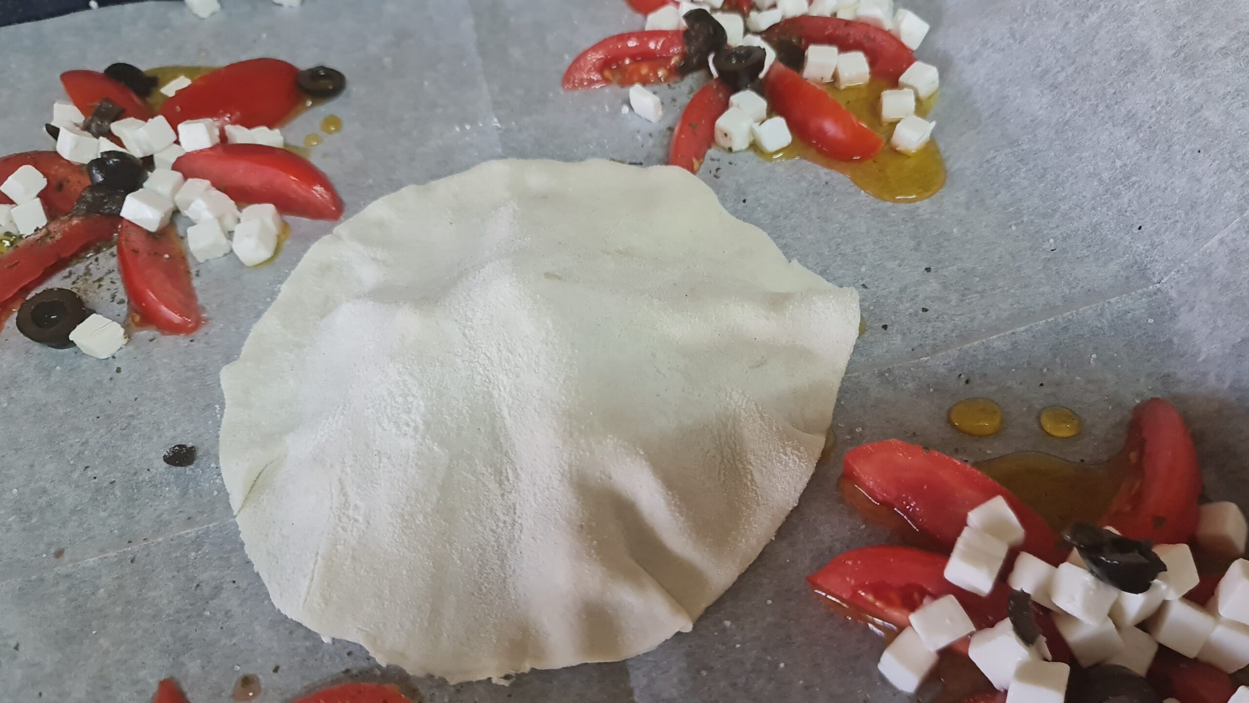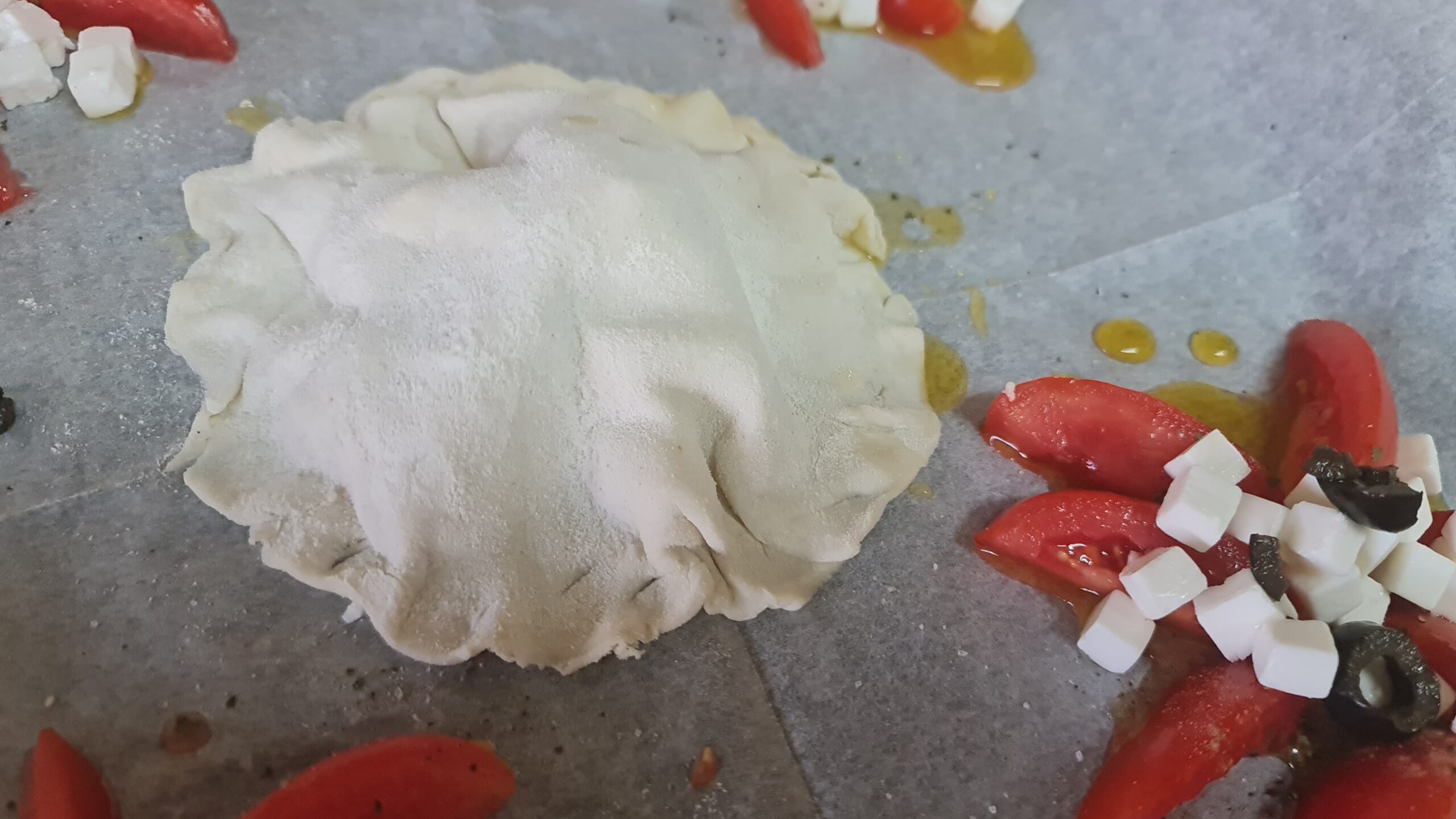 Rabattre les bords vers l’intérieur et préchauffer le four à 180 °C.