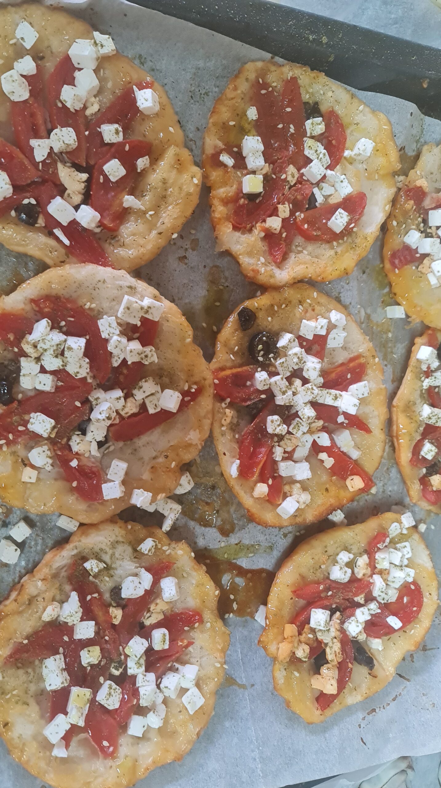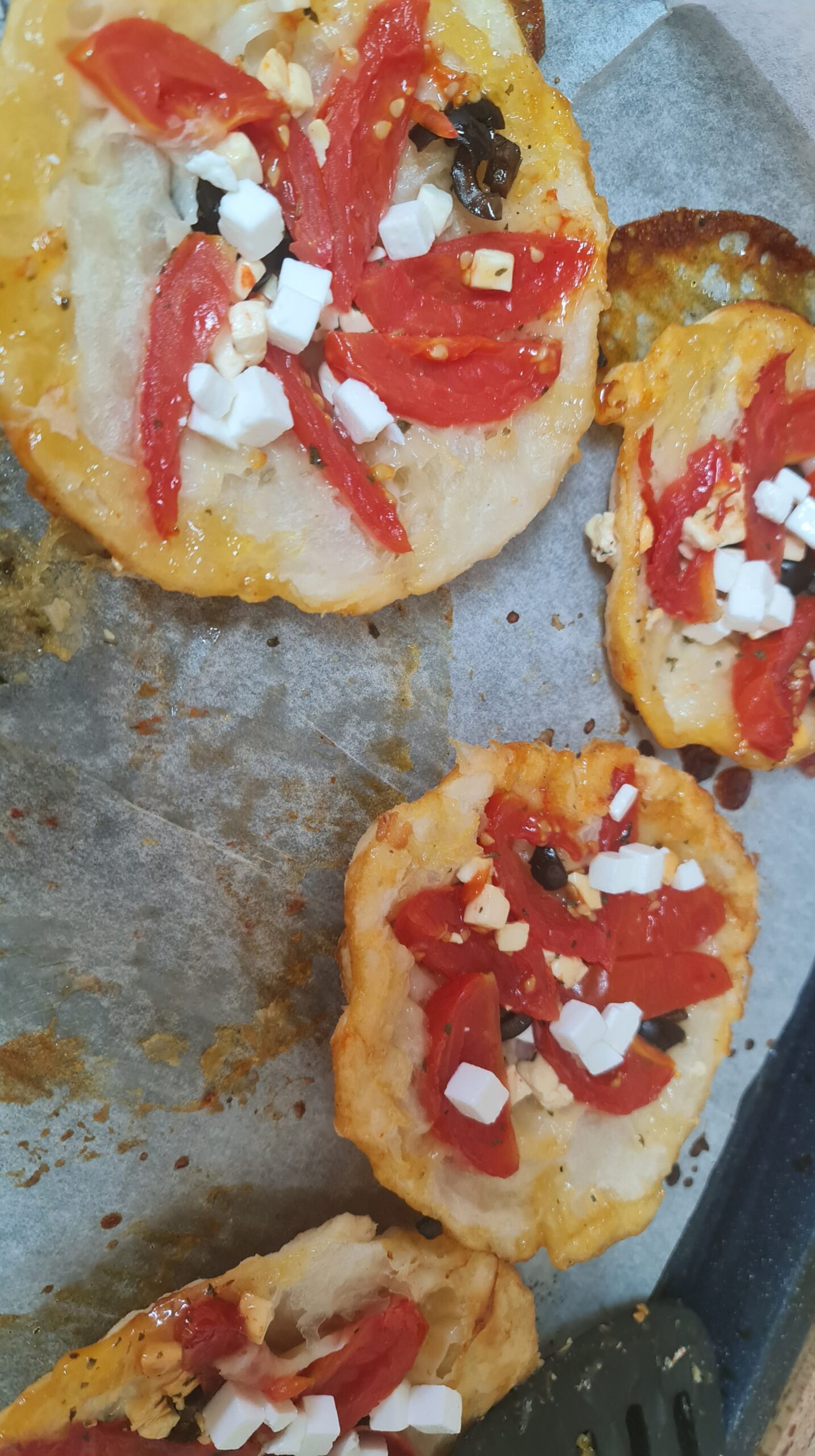 Une fois cuites, ajouter de la feta émiettée, un peu de sel et de poivrer un filet d’huile d’olive et du basilic finement ciselé