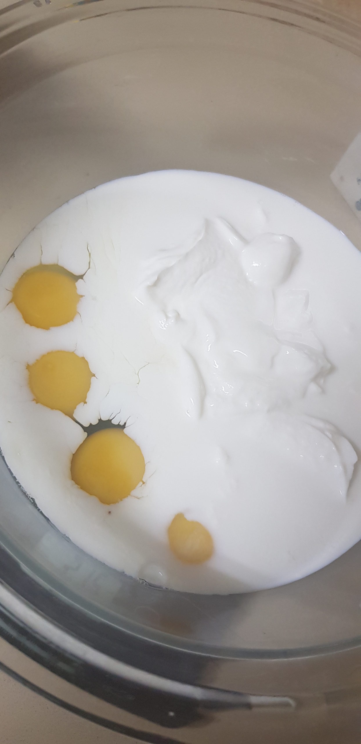 Dans un saladier, mélanger les œufs, le fromage blanc, le lait et l’arôme de fleur d’oranger.