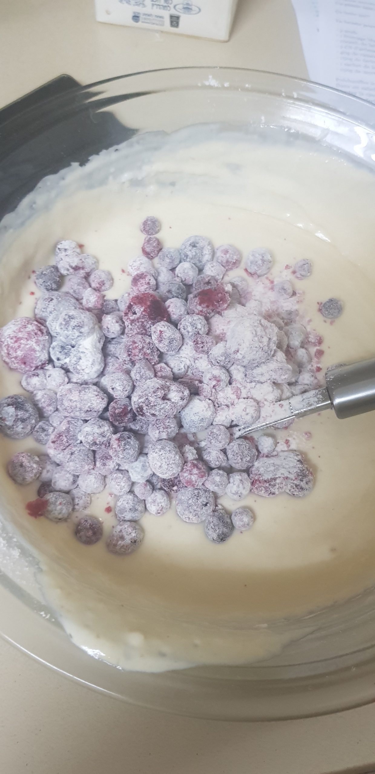 Donc on enrobe les myrtilles avec 1 CS de farine.