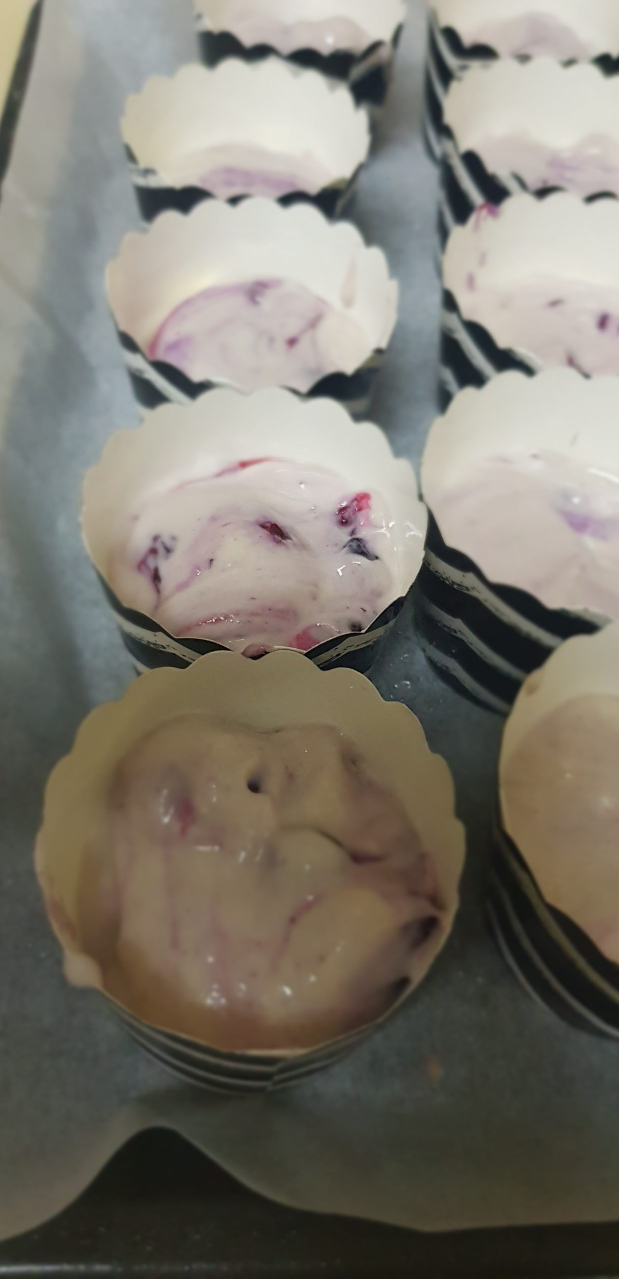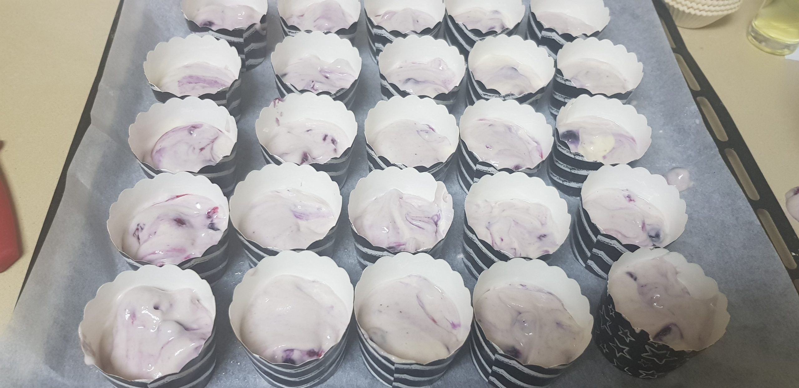On ajoute les myrtilles à la préparation et on garnit les moules.