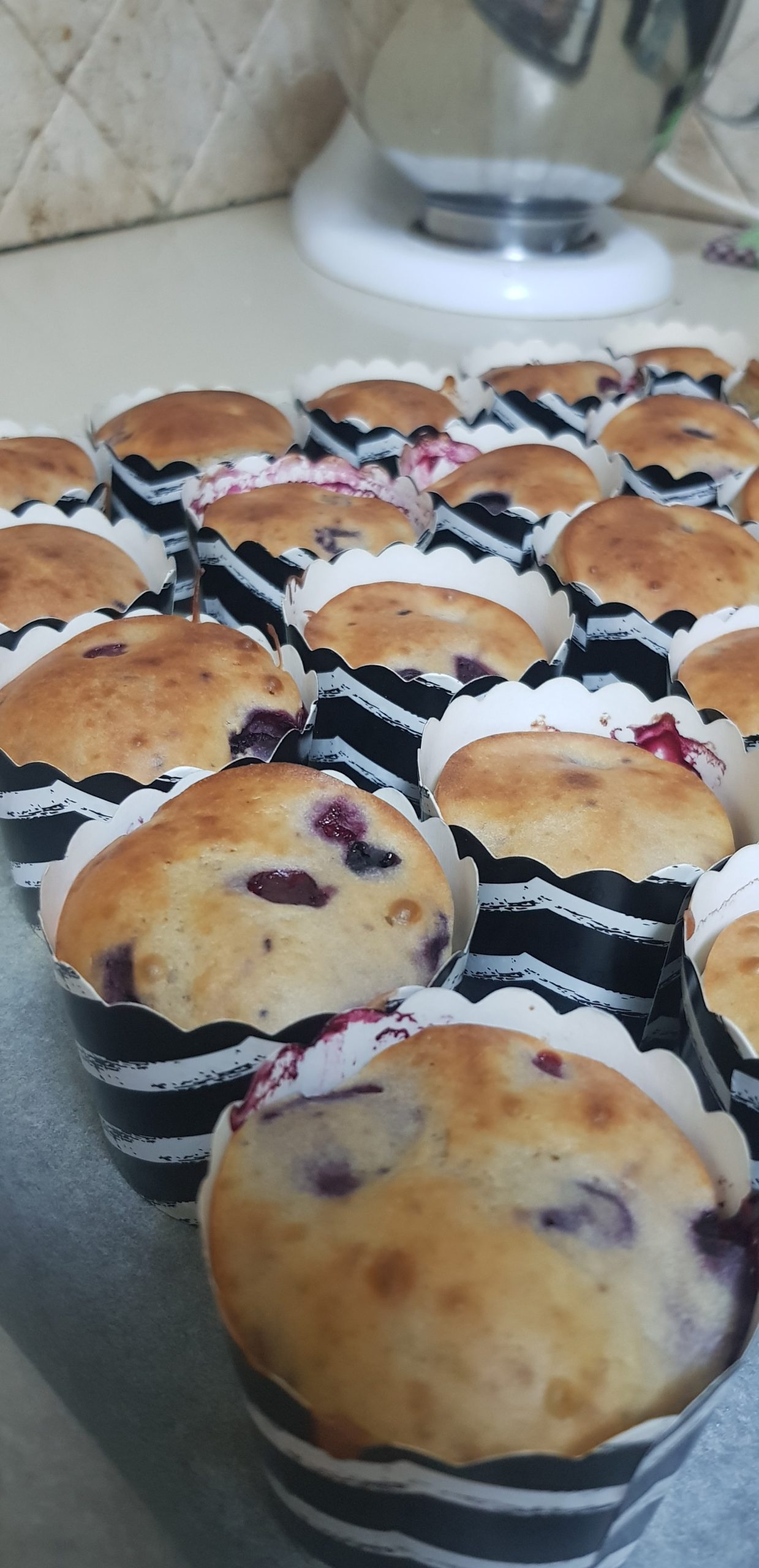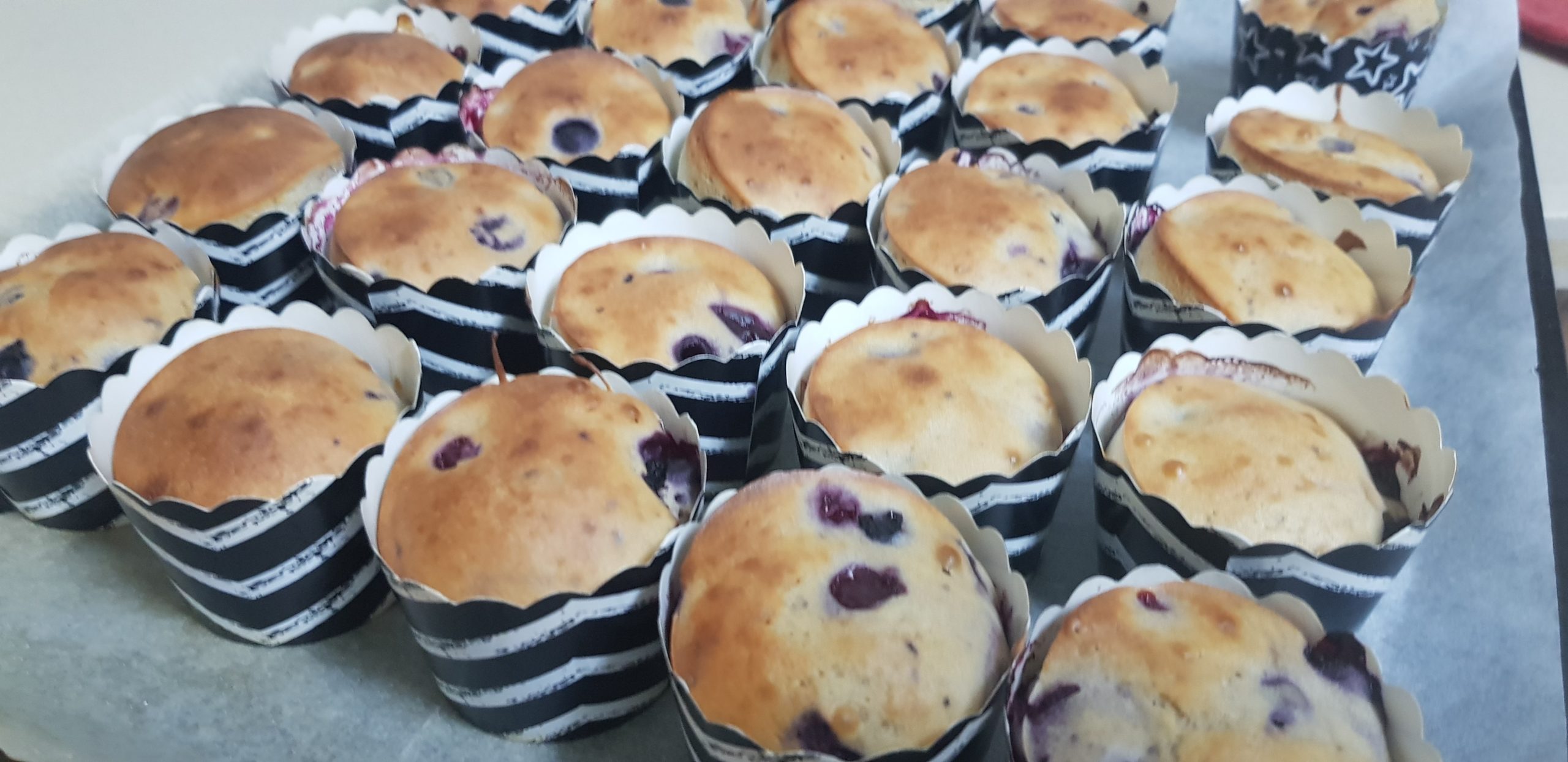Ajouter quelques myrtilles sur le dessus de chaque muffin et enfourner 30min à 180°!