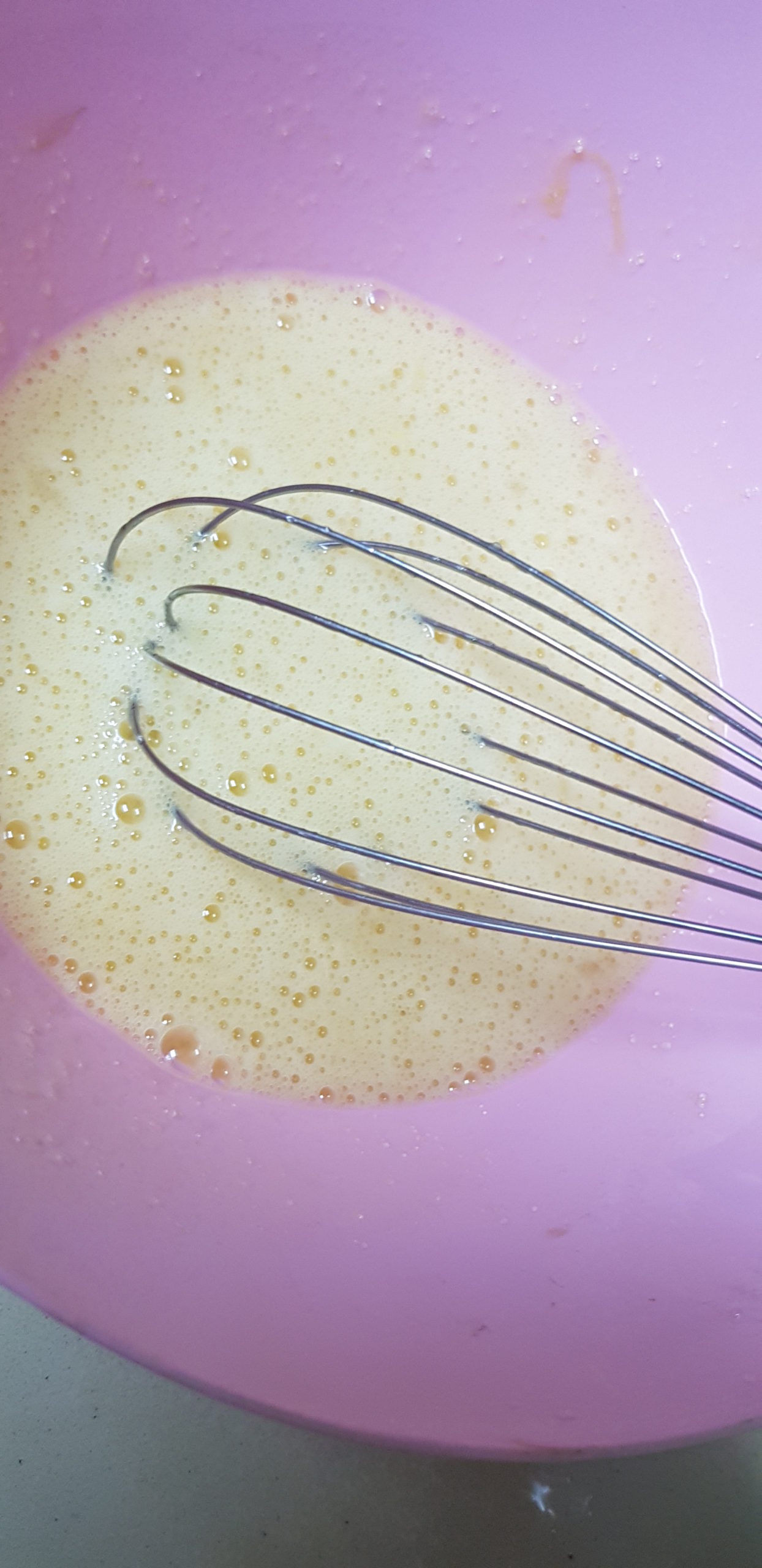 Mélanger les oeufs + le sucre + la vanille + les raisons secs trempés , et mettre de coté.