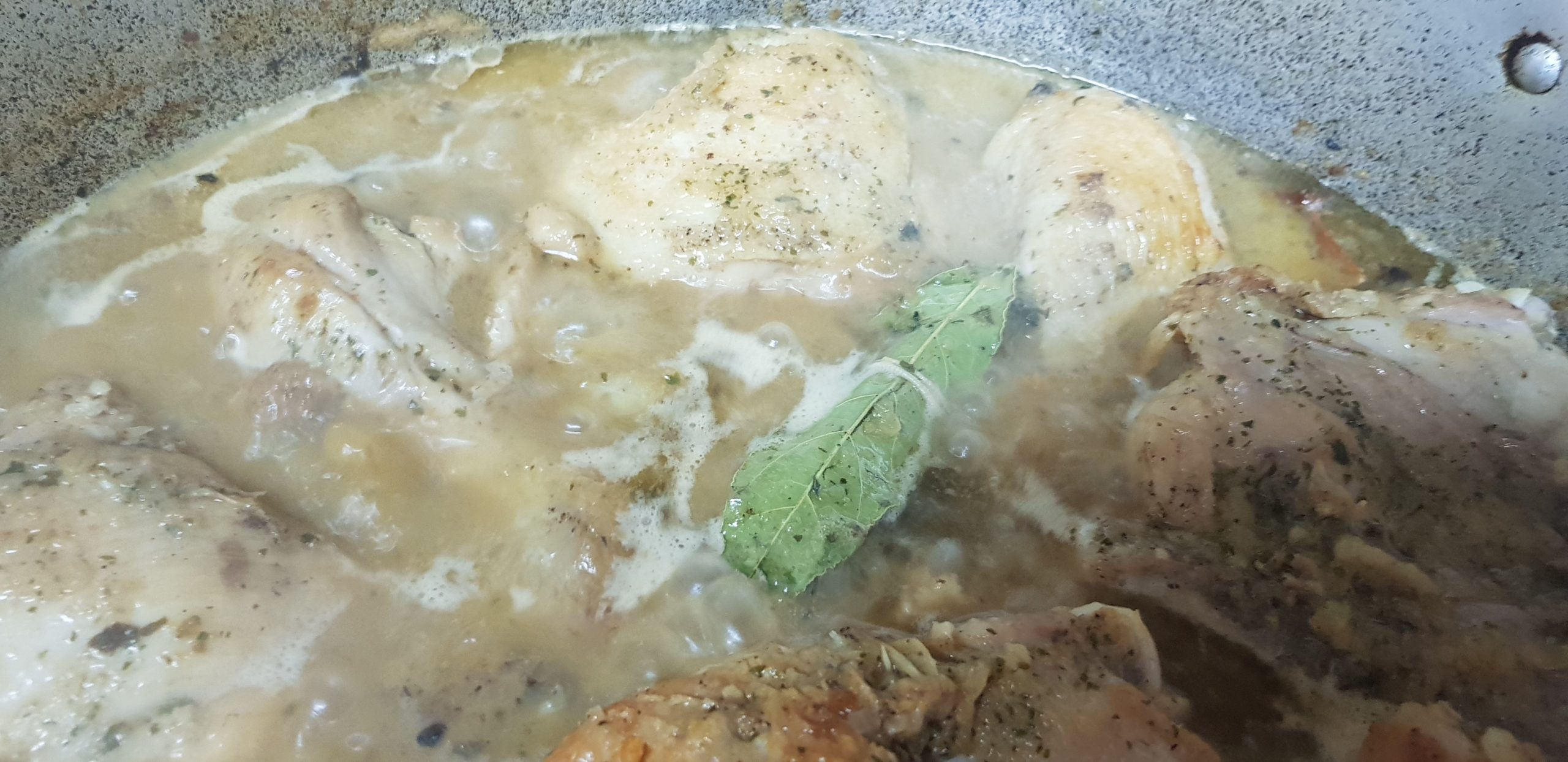 Laisser mijoter sans couvercle environ 20 minutes. Vérifier la cuisson du poulet.