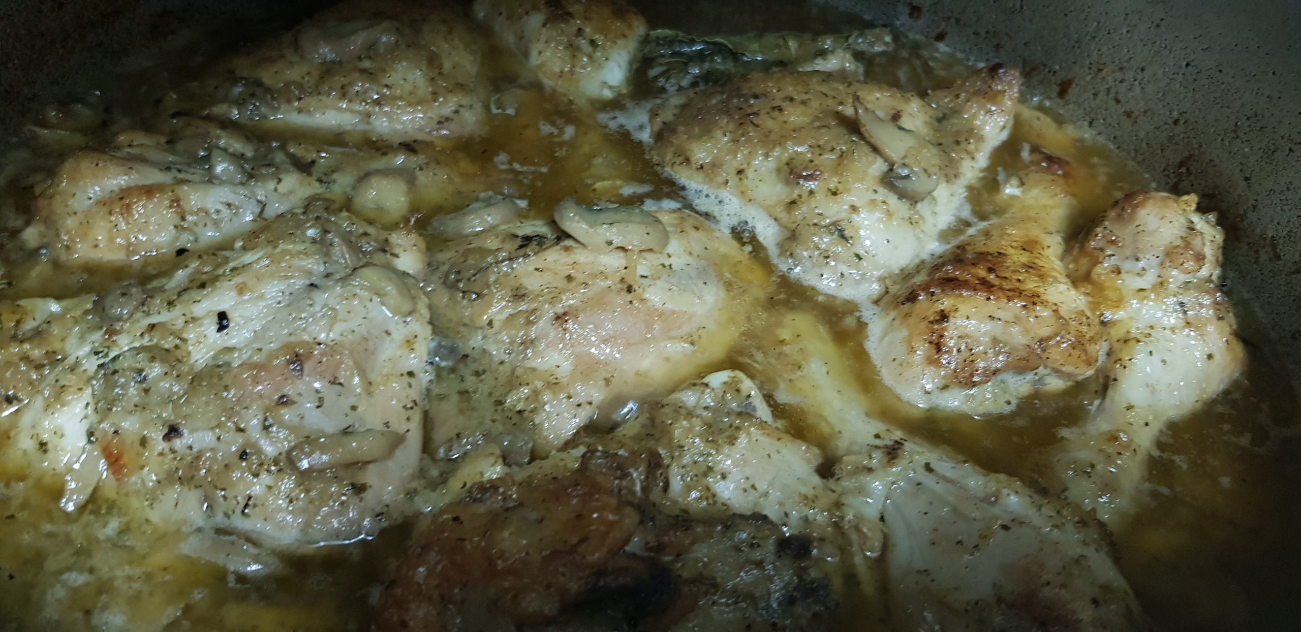 Faire revenir l’oignon haché avec la coriandre dans la margarine fondu. Ajouter le poulet et faire dorer à feu vif et des que le morceaux sont bien dorés , vous pourrez ajouter les champignons émincés.