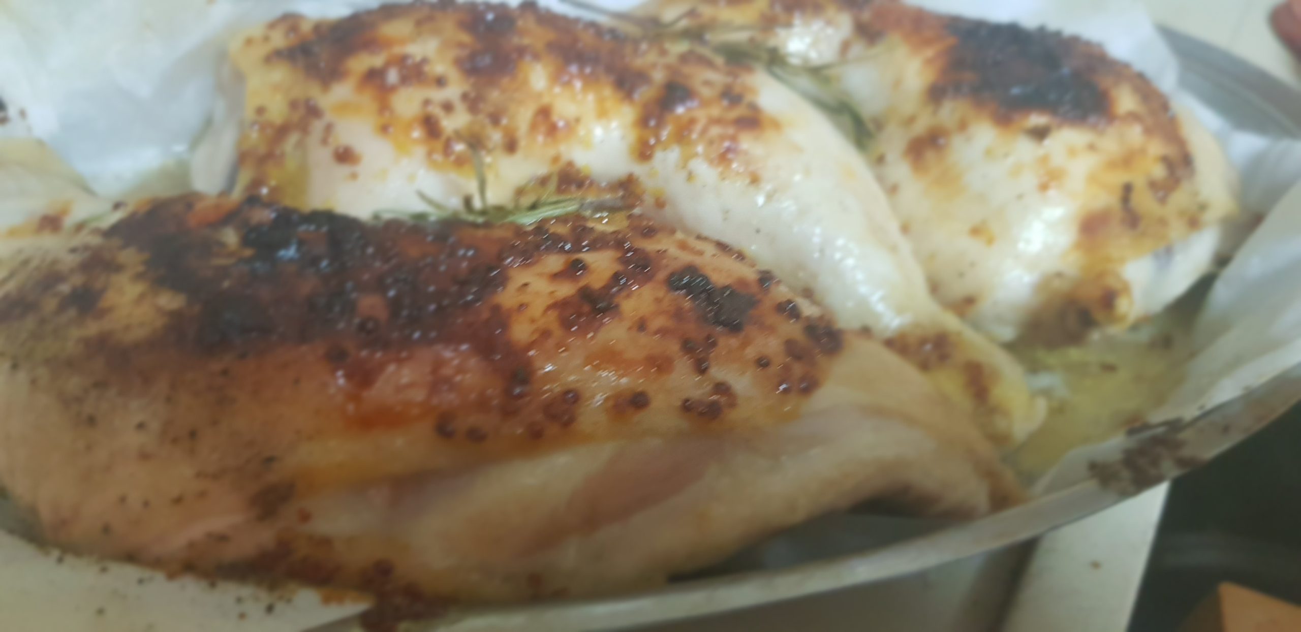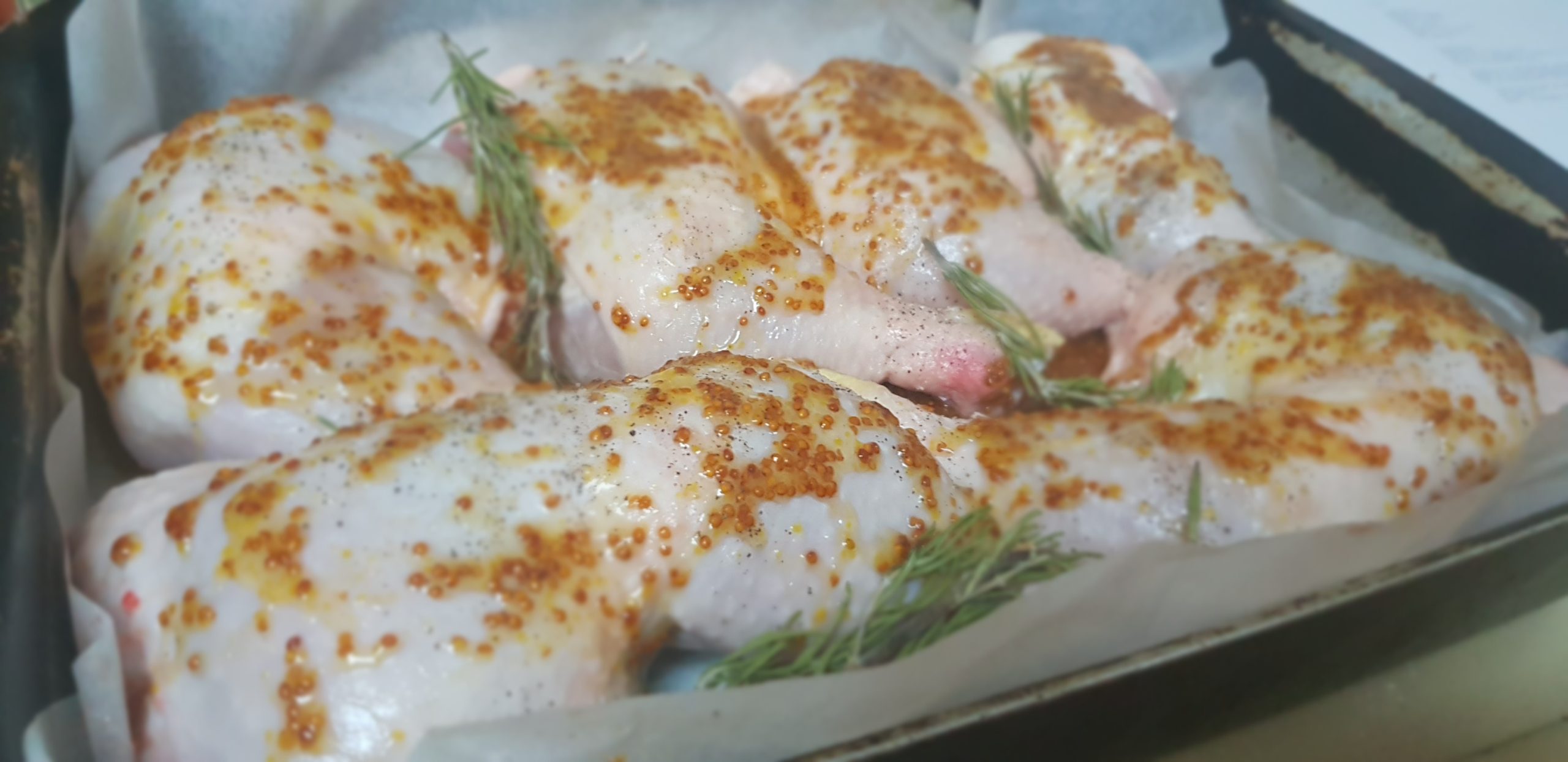 Nappez de la sauce. Ajoutez les brins de romarin. Salez et poivrez. Versez de l’eau dans le fond du plat, sur 1 cm