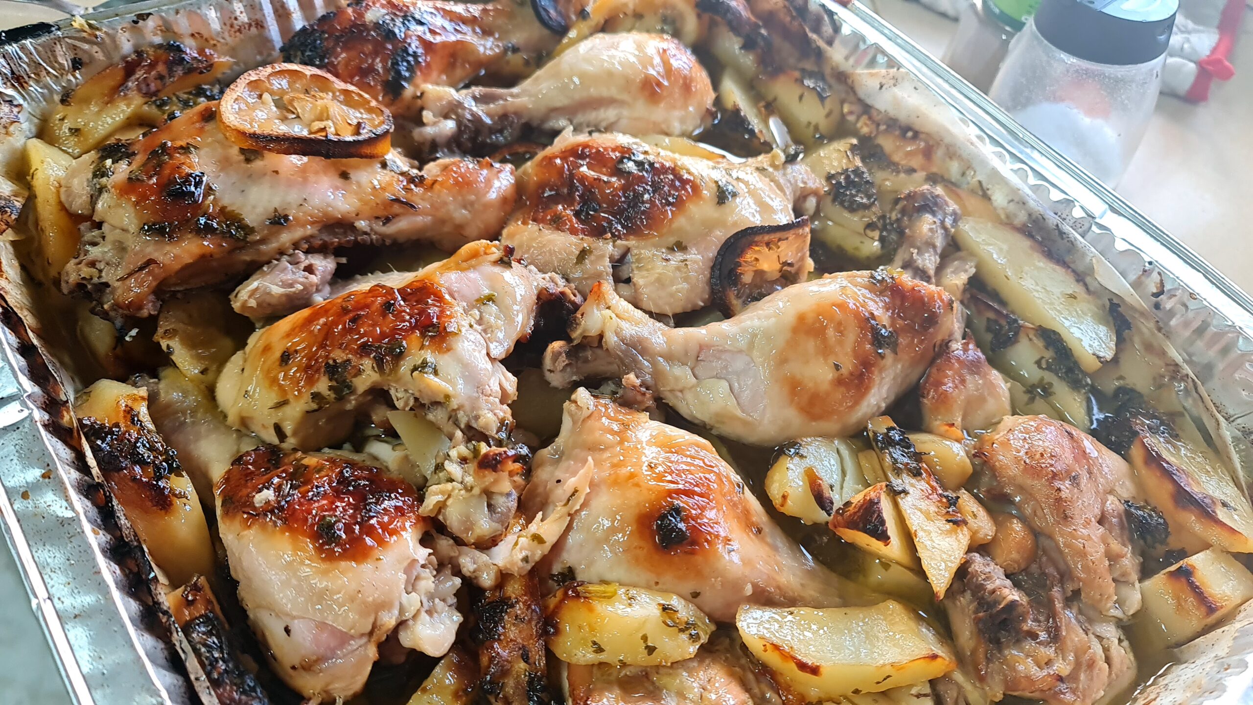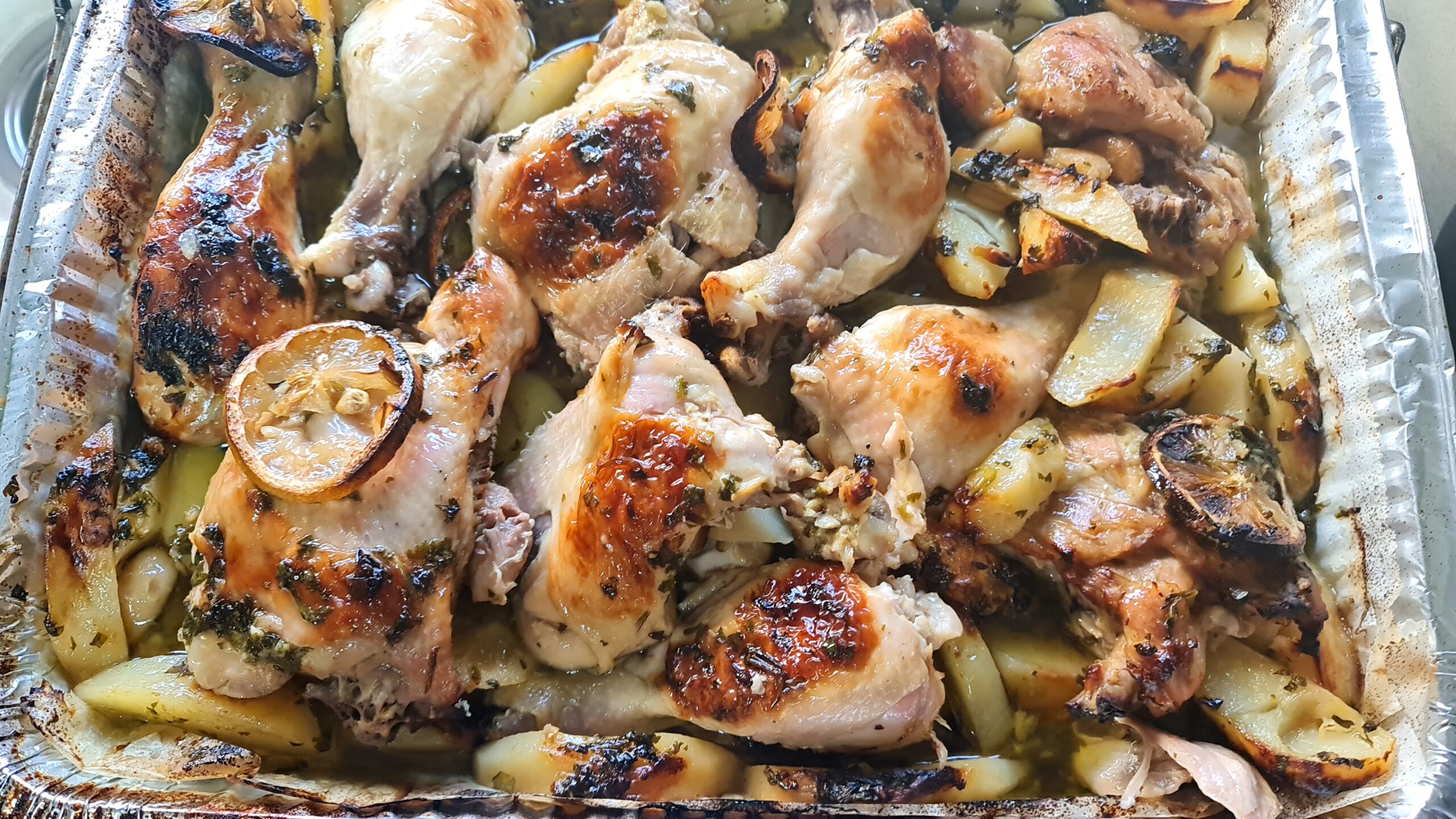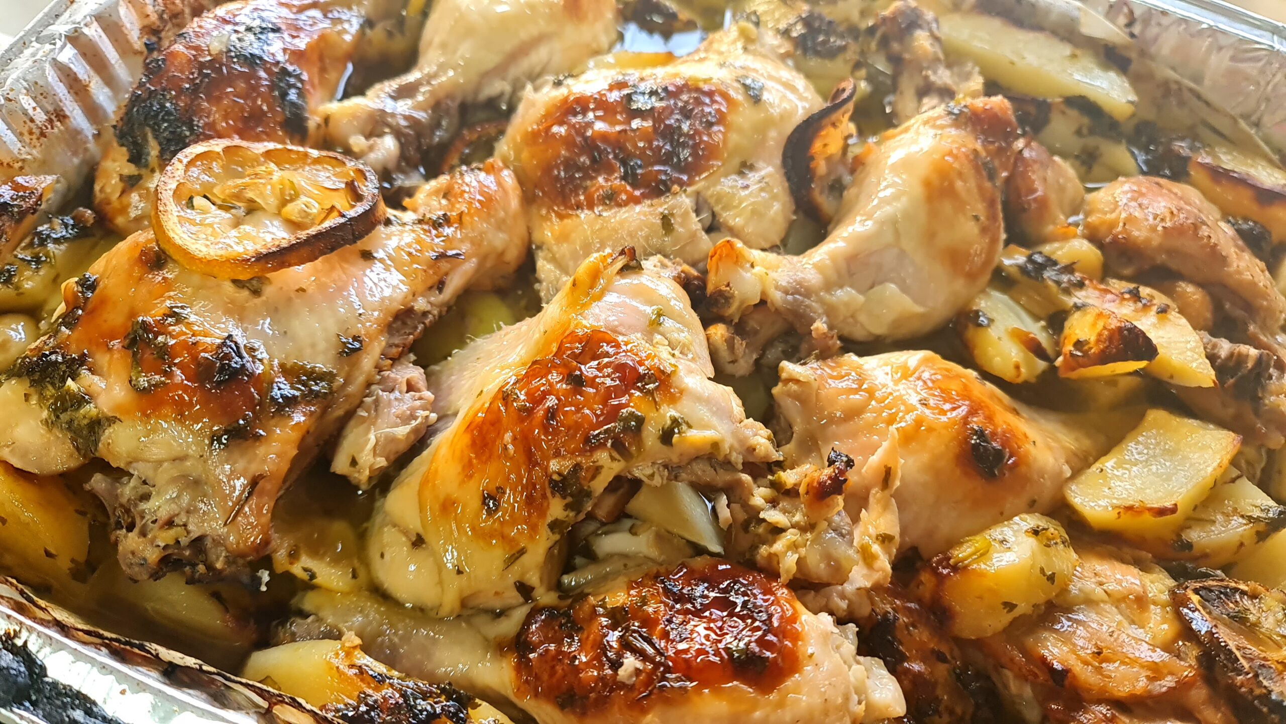 Voici une recette de poulet et de pommes de terre avec une sauce à la grecque, avec beaucoup d’ail citronné et de miel et avant de demander, le plat n’est pas sucré! Un mélange de saveurs qui a créé un régal pour le palais et les yeux..