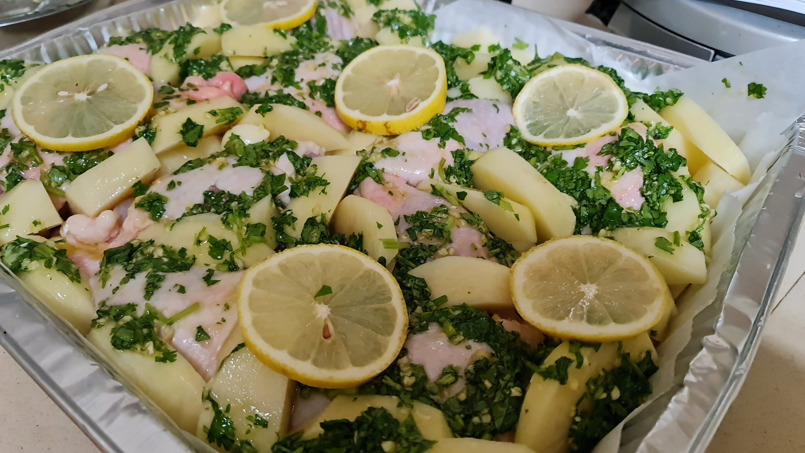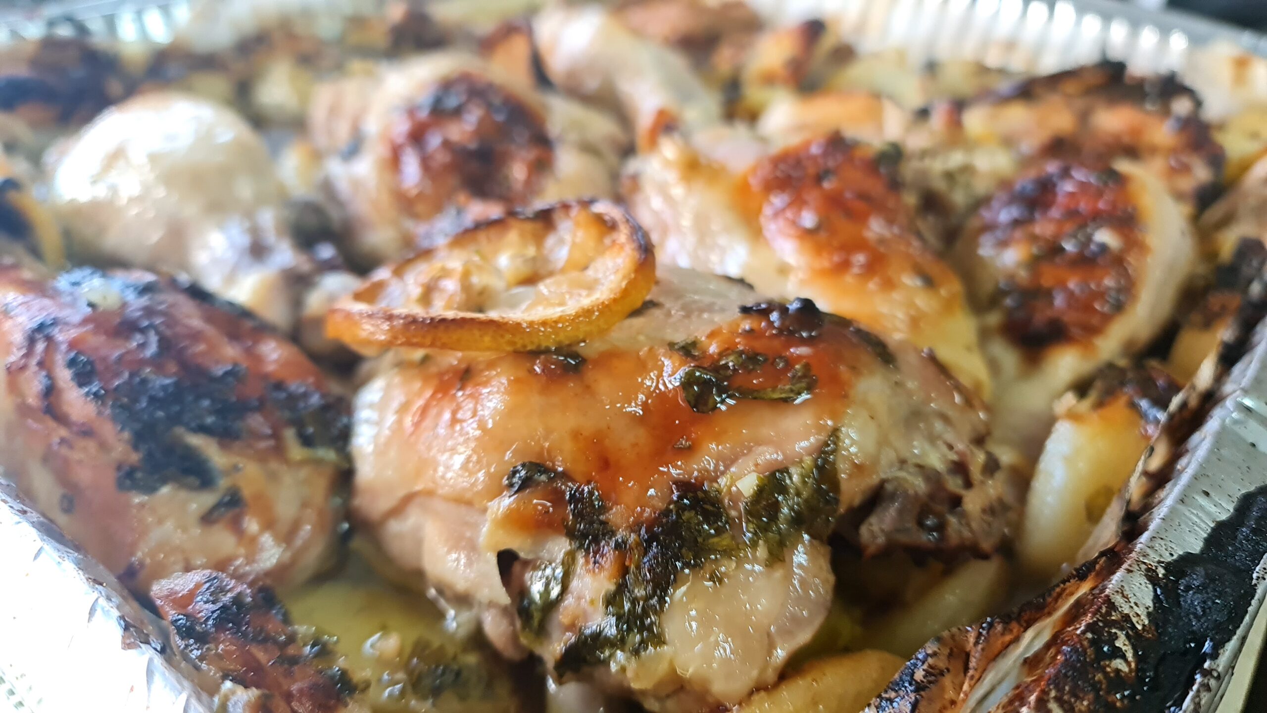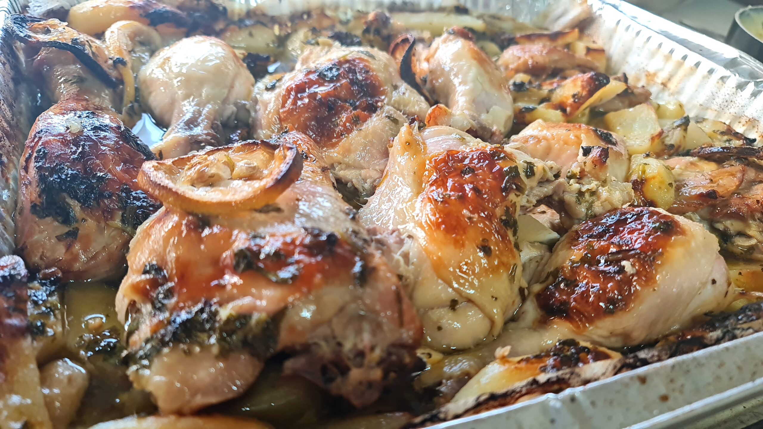 Voici une recette de poulet et de pommes de terre avec une sauce à la grecque, avec beaucoup d’ail citronné et de miel et avant de demander, le plat n’est pas sucré! Un mélange de saveurs qui a créé un régal pour le palais et les yeux..