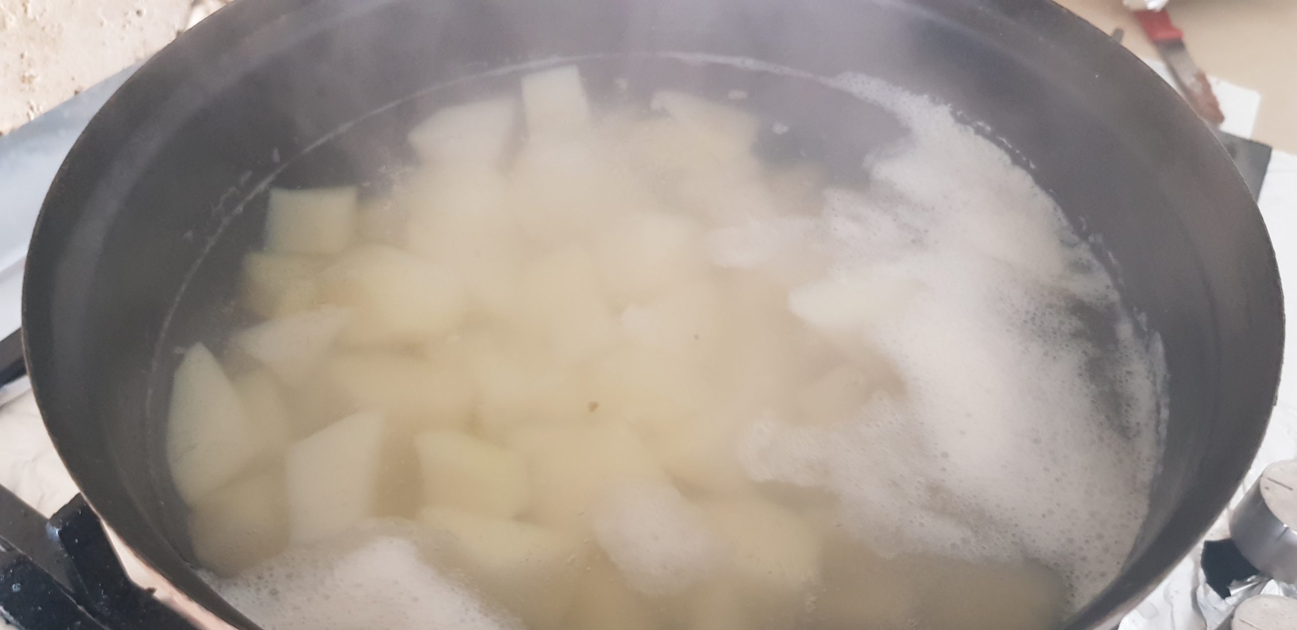 Entre temps faire bouillir des petites pommes de terre et les éplucher.
