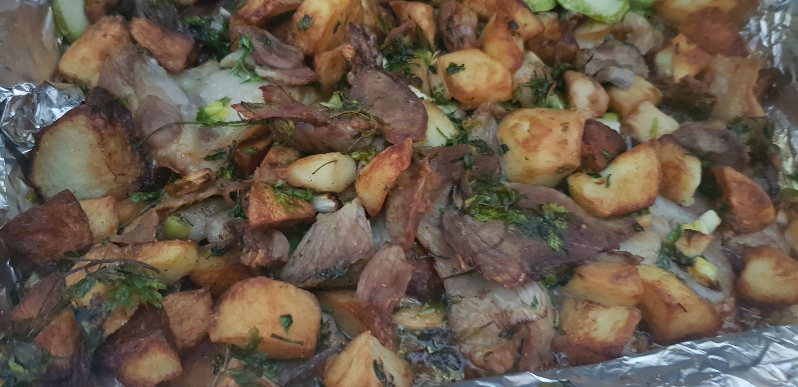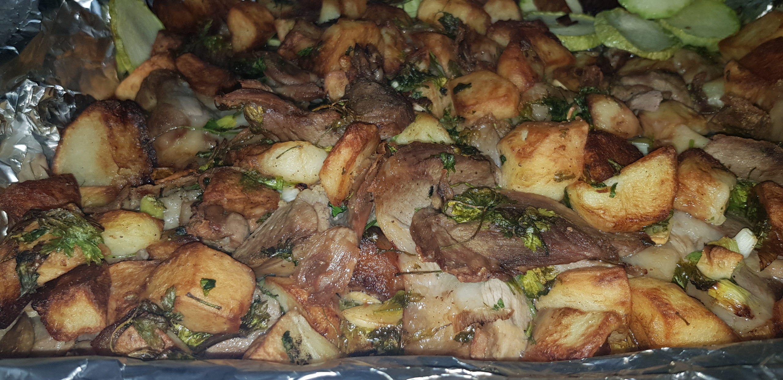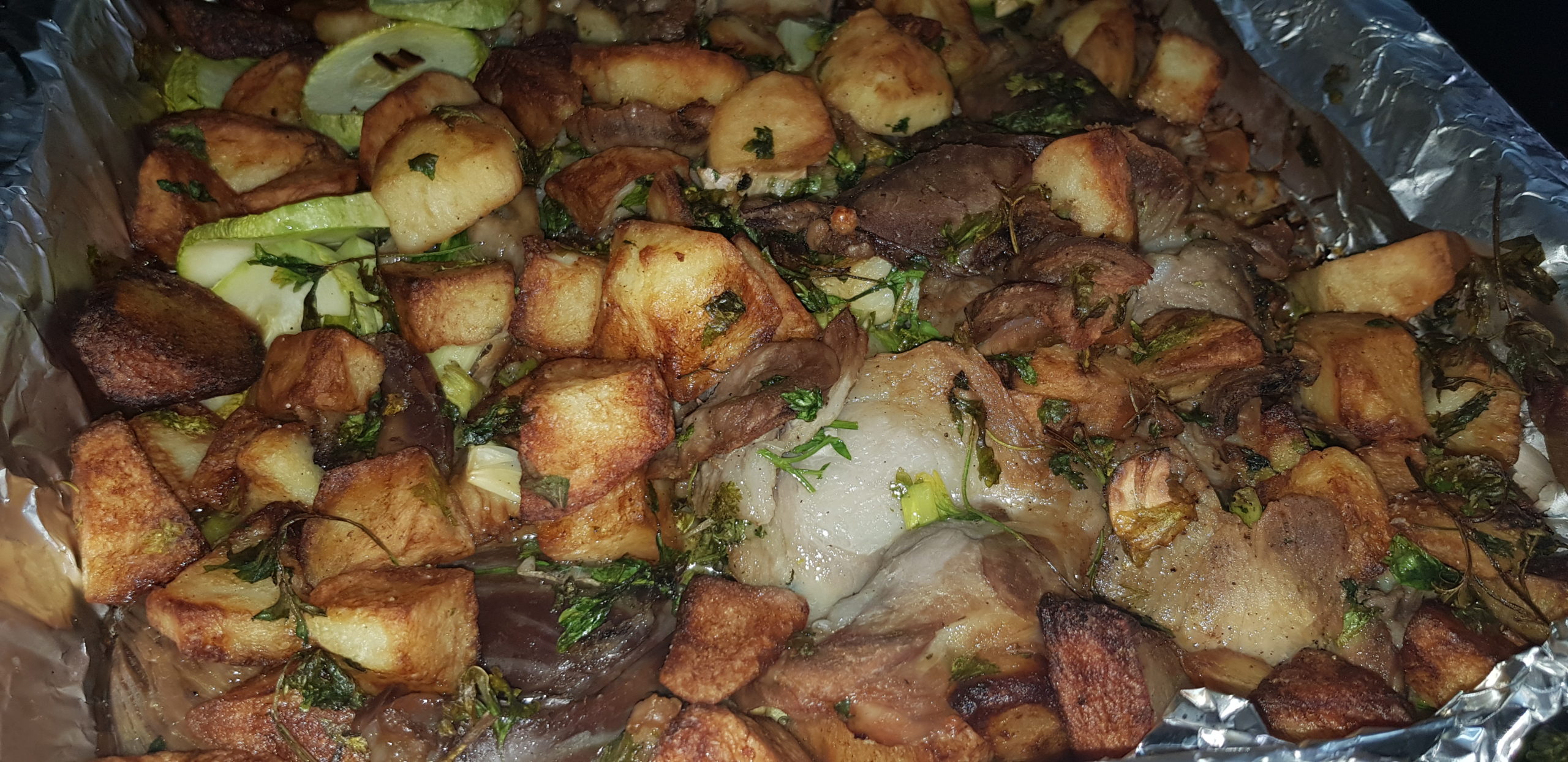 Ajouter les petites pommes de terres frit dans une poêle par avance avec l’épaule d’agneau et laisser mijoter doucement.