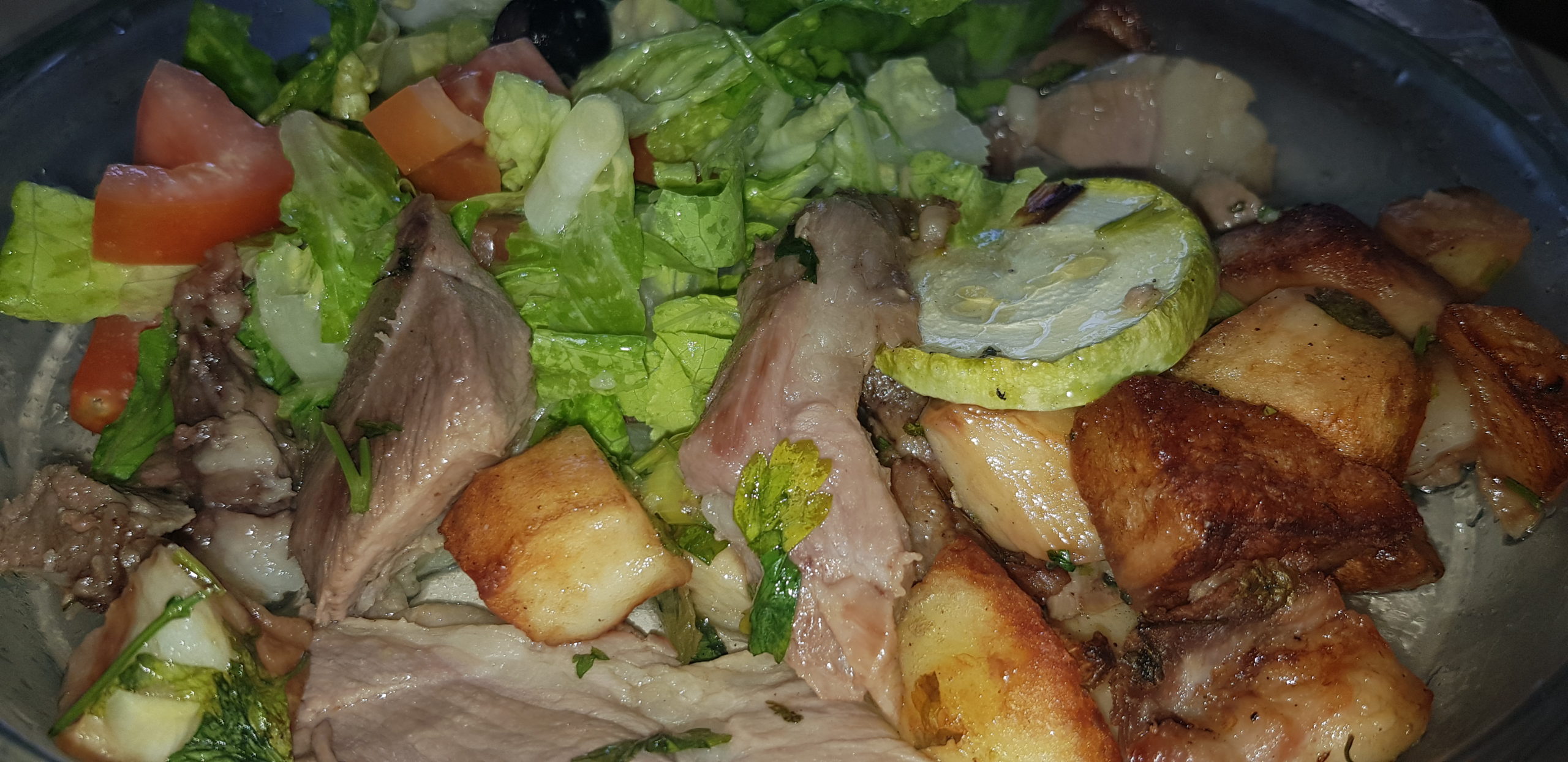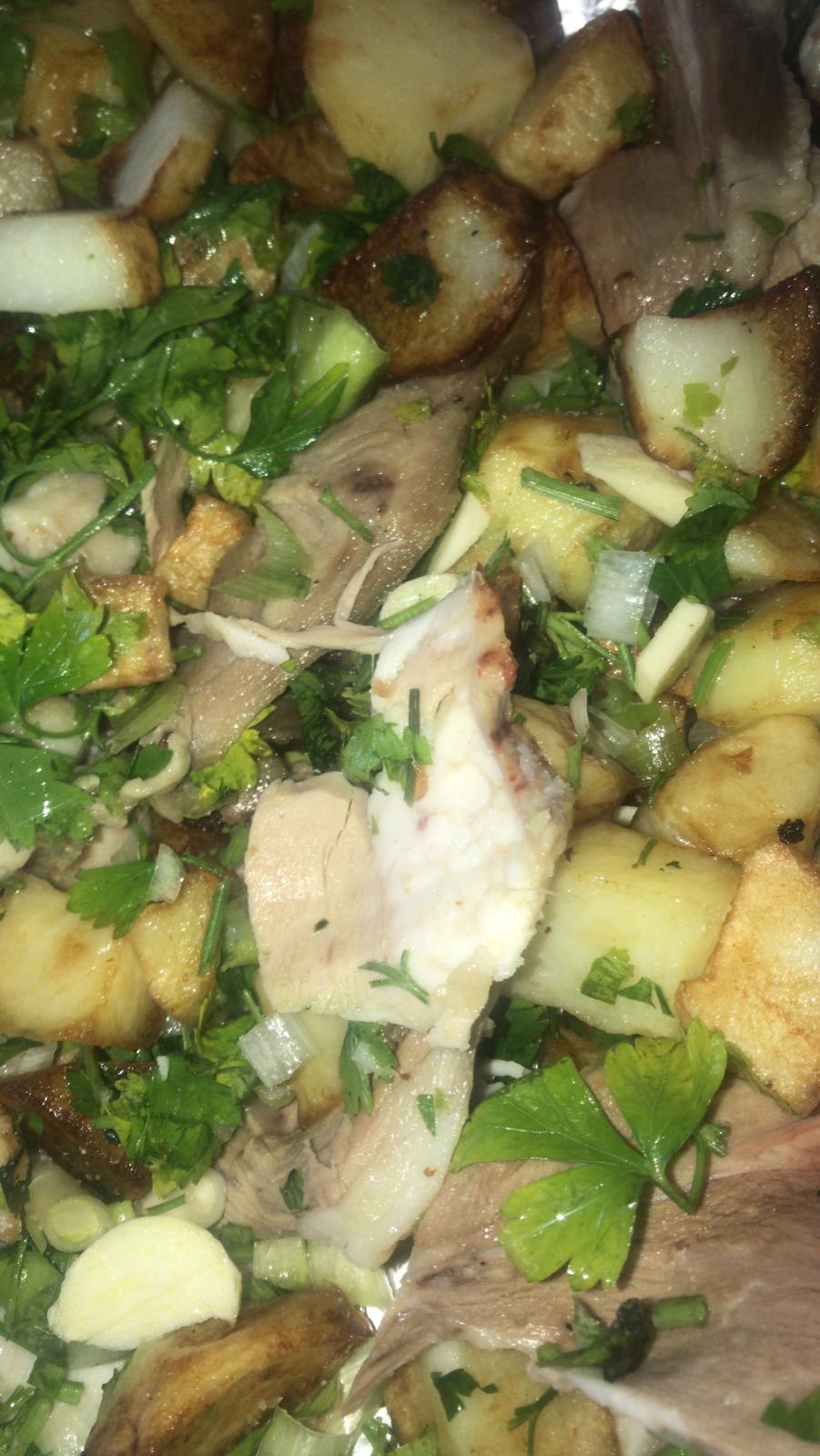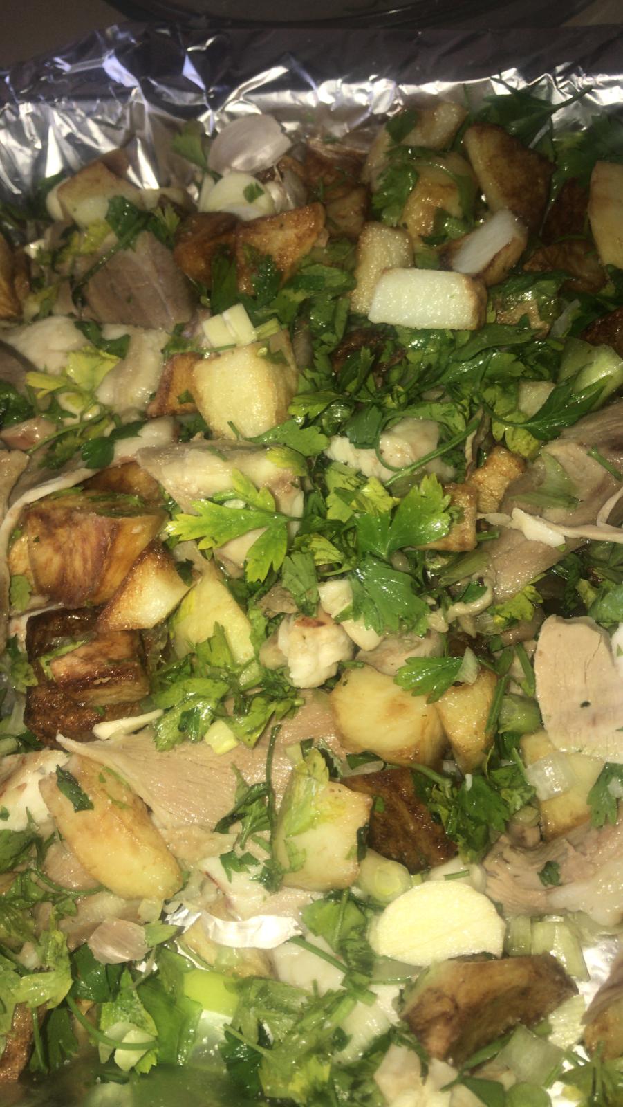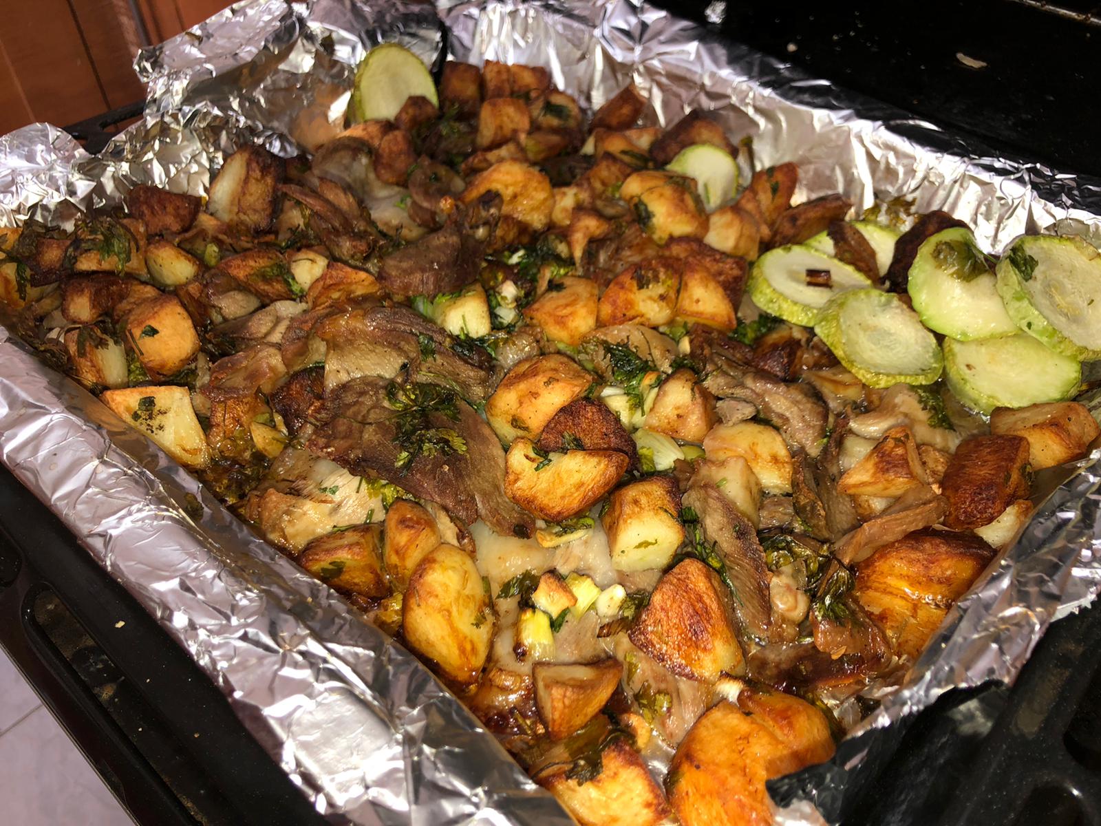 Ajouter les petites pommes de terres frit dans une poêle par avance avec l’épaule d’agneau et laisser mijoter doucement.