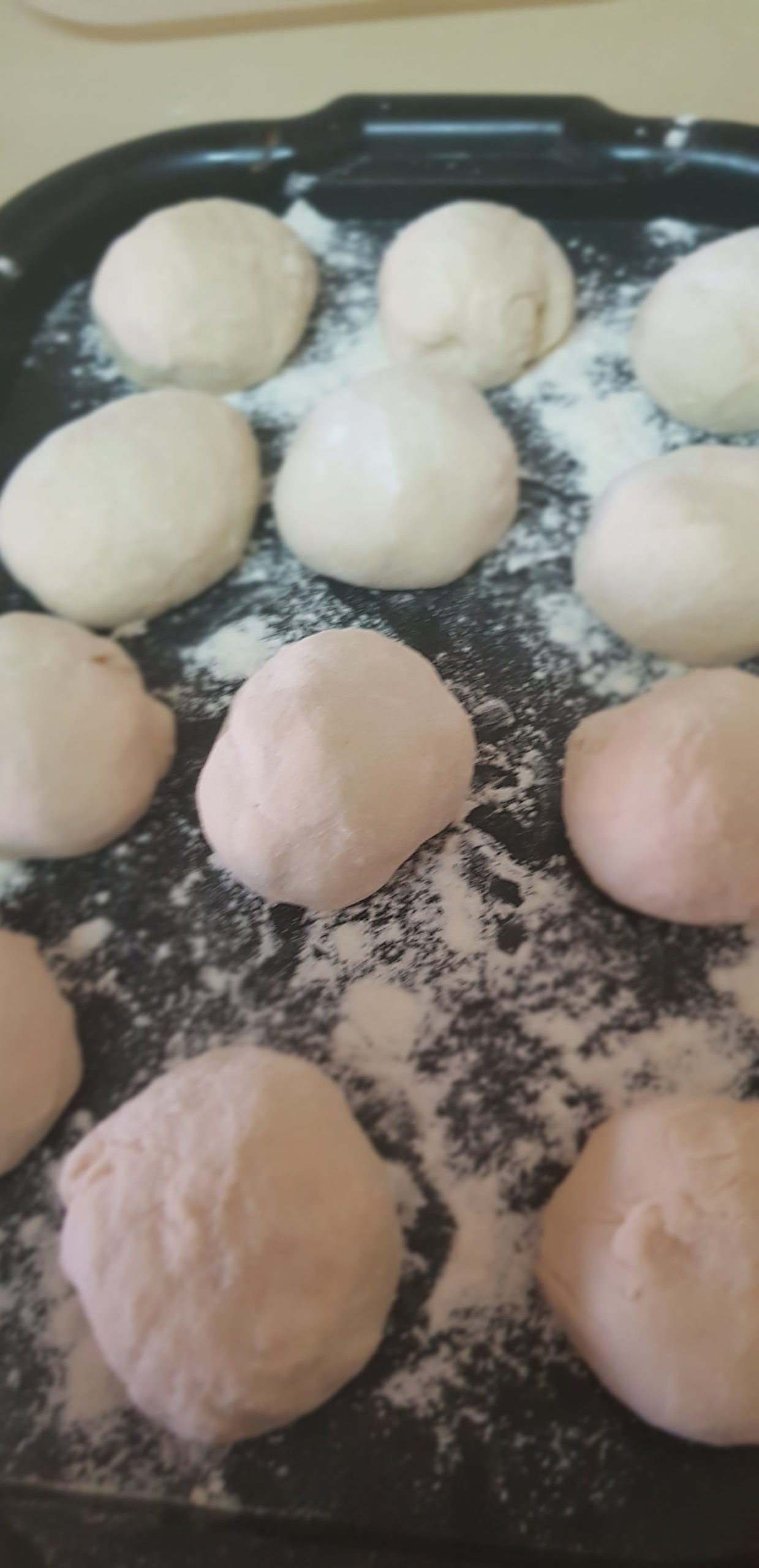 2. Divisez la pâte en 8 à 10 morceaux de taille égale. Roulez chaque pièce en boule. Couvrez les boules et reposez-vous pendant 15 minutes.