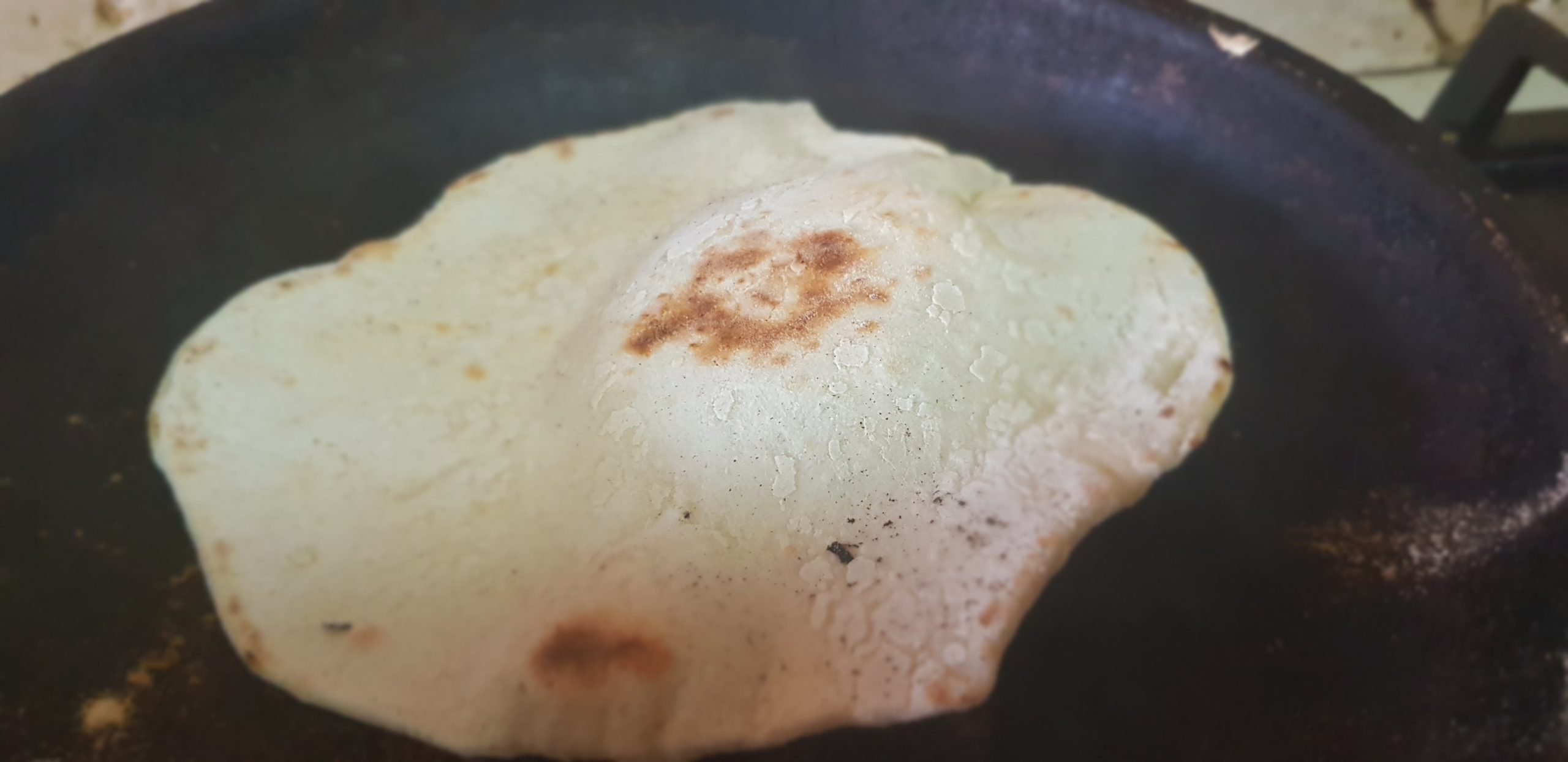 5. Faites chauffer une grande poêle en fonte ou une poêle antiadhésive à feu moyen-élevé. Lorsque la poêle est chaude, ajoutez un cercle de pâte dans la poêle sèche et laissez cuire environ 2 minutes, jusqu’à ce que le fond brun et les bulles apparaissent. Retourner et cuire 1 à 2 minutes de plus.