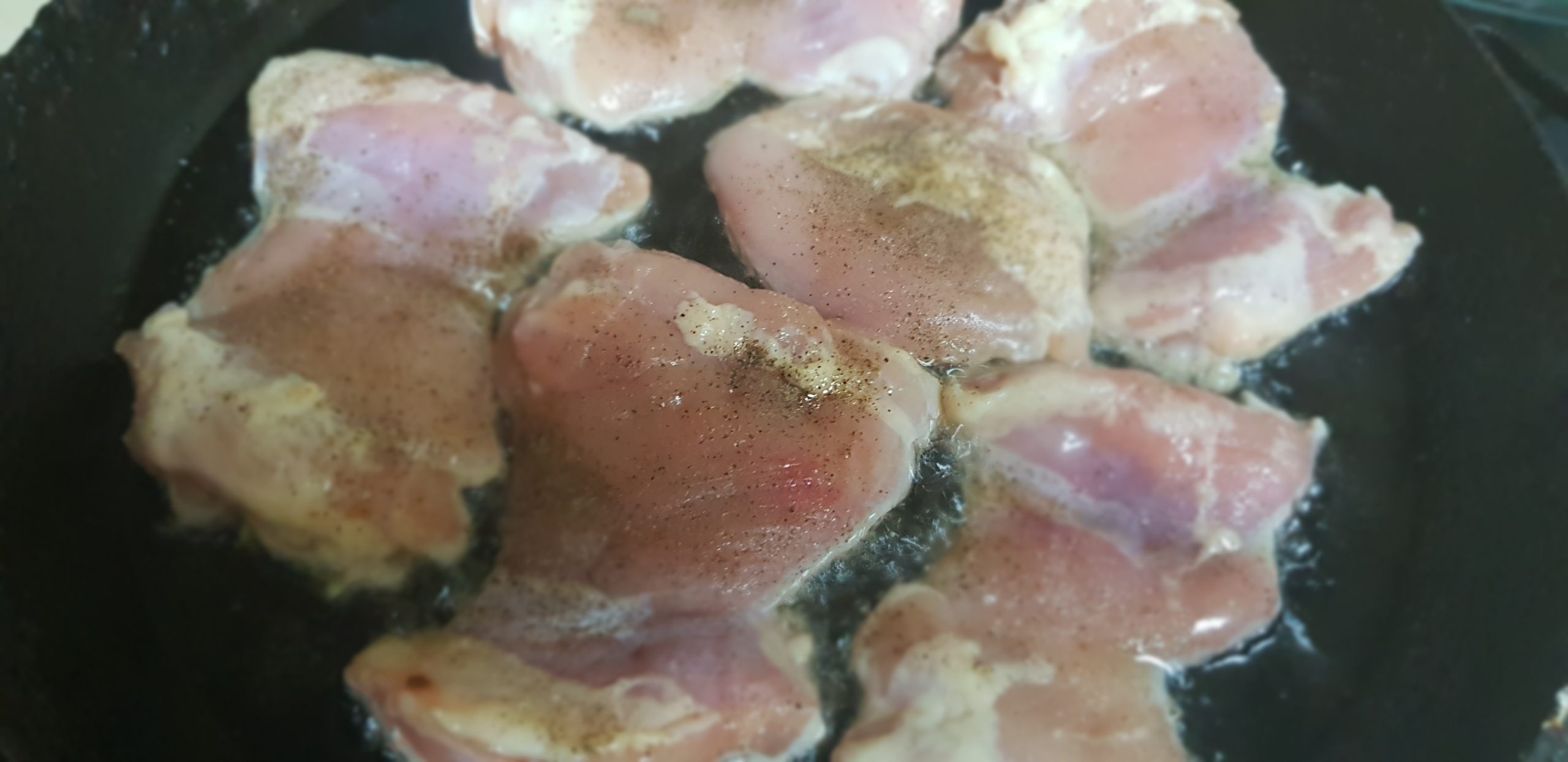 2. Assaisonnez le poulet avec du sel et du poivre. Chauffer l’huile dans une grande poêle à feu moyen, ajouter le poulet, faire revenir d’un côté pendant 6-7 minutes, jusqu’à ce qu’il soit doré. Retourner et faire frire pendant 4 à 5 minutes de plus.