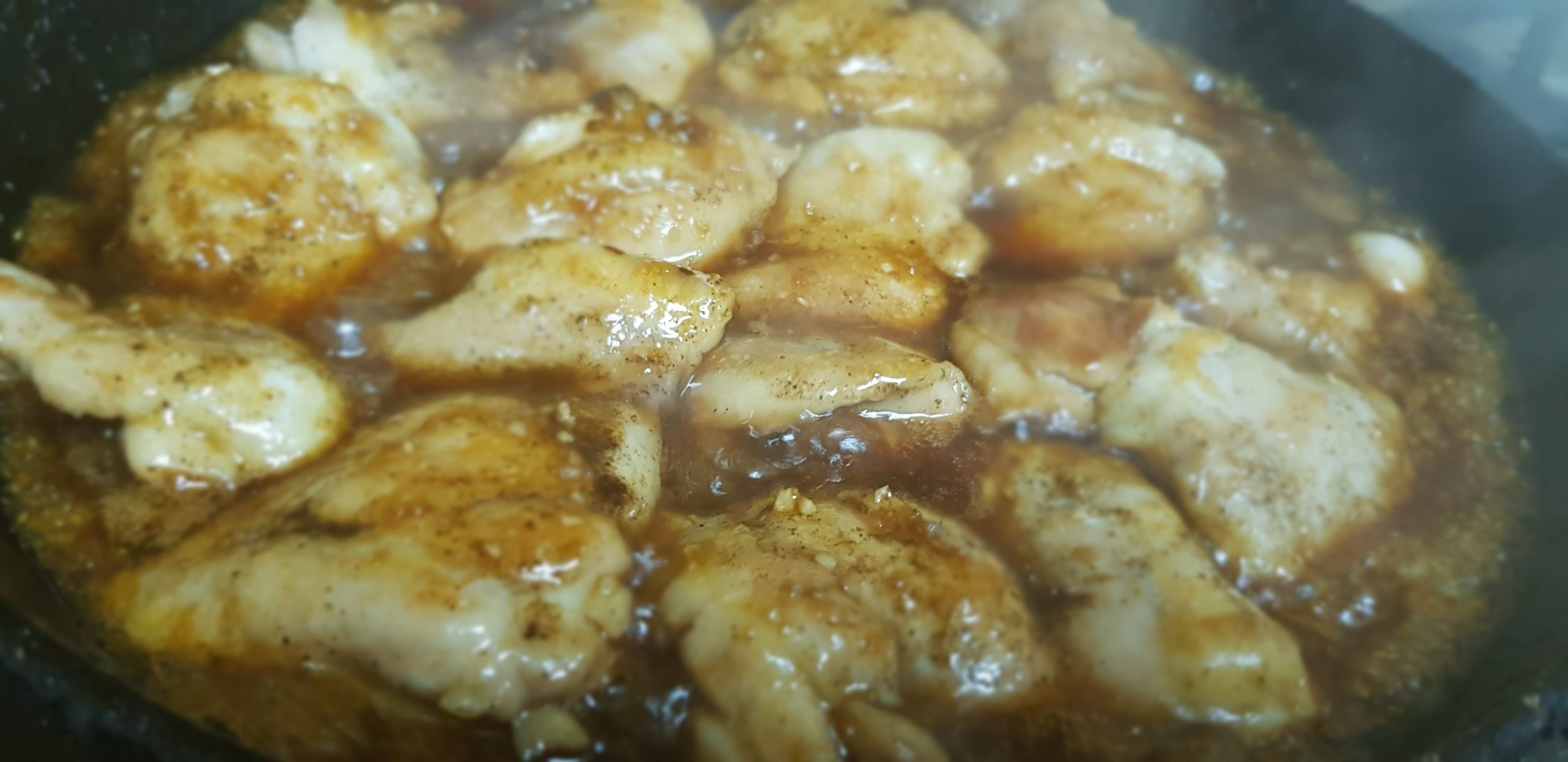 3. Verser la sauce et laisser mijoter jusqu’à ce que la sauce épaississe légèrement et que le poulet soit bien cuit, environ 3 à 5 minutes.