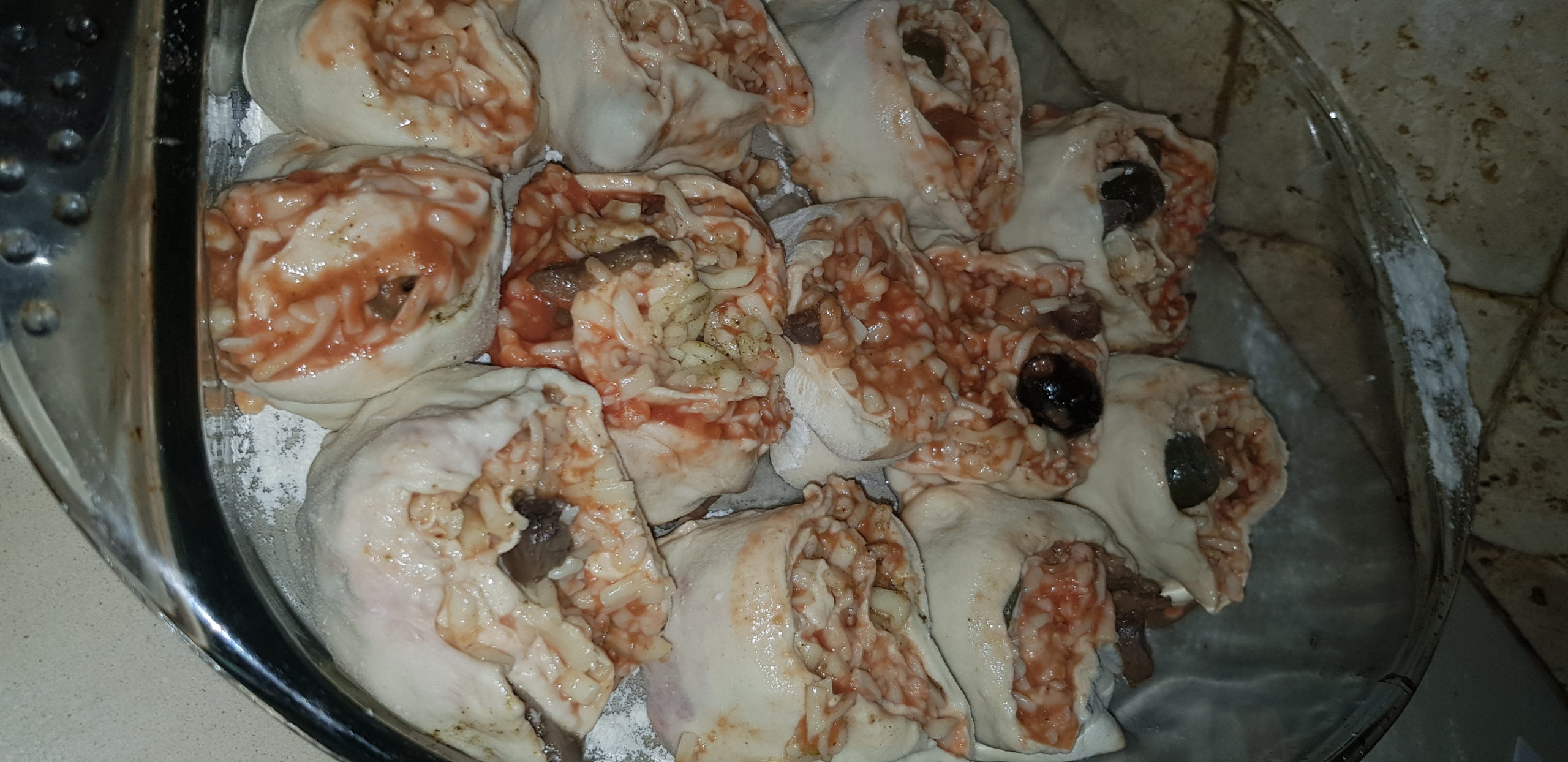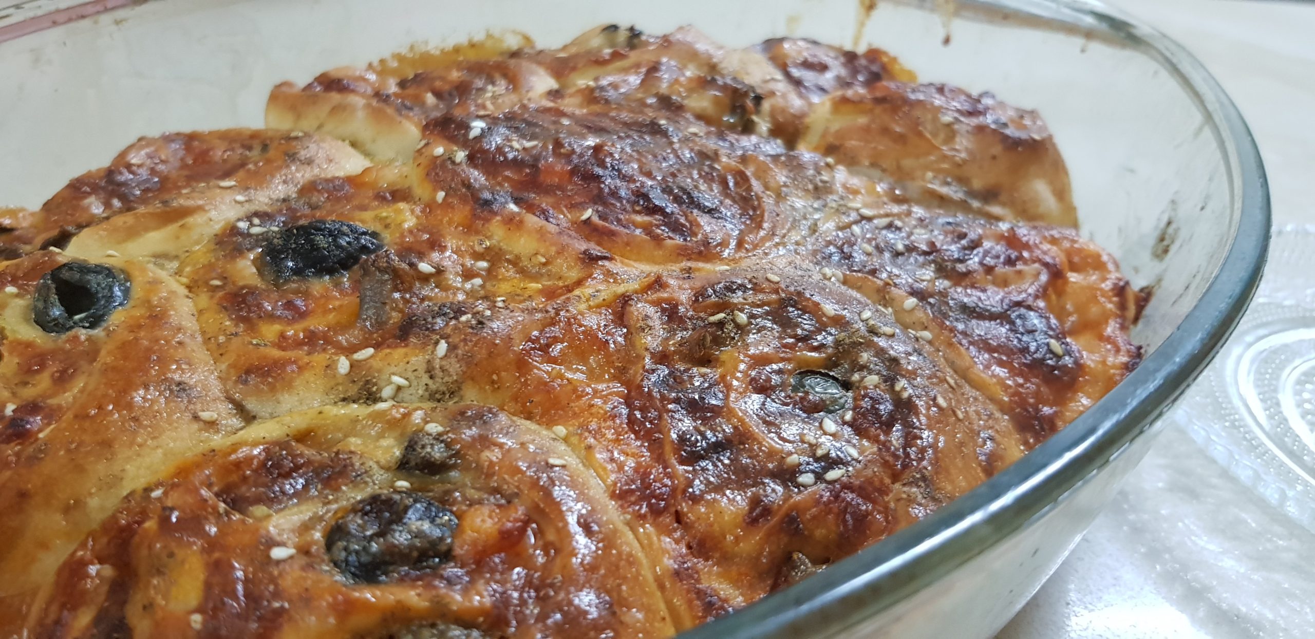 5. Rouler doucement la pâte comme une bûche. Trancher en 12 morceaux égaux. Placer les rouleaux dans un plat allant au four tapissé de papier sulfurisé. Couvrir d’une pellicule plastique et laisser lever 30 minutes.