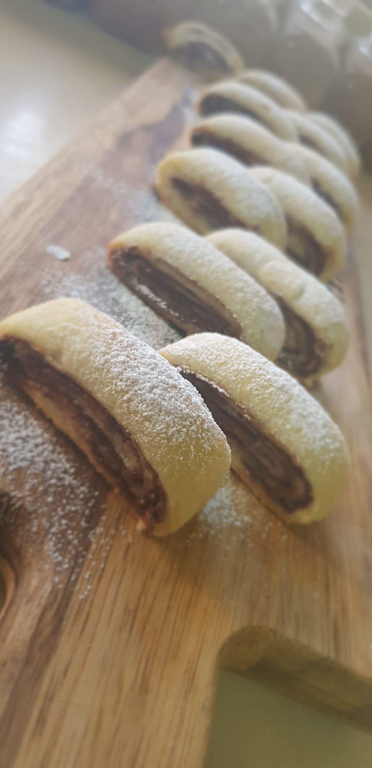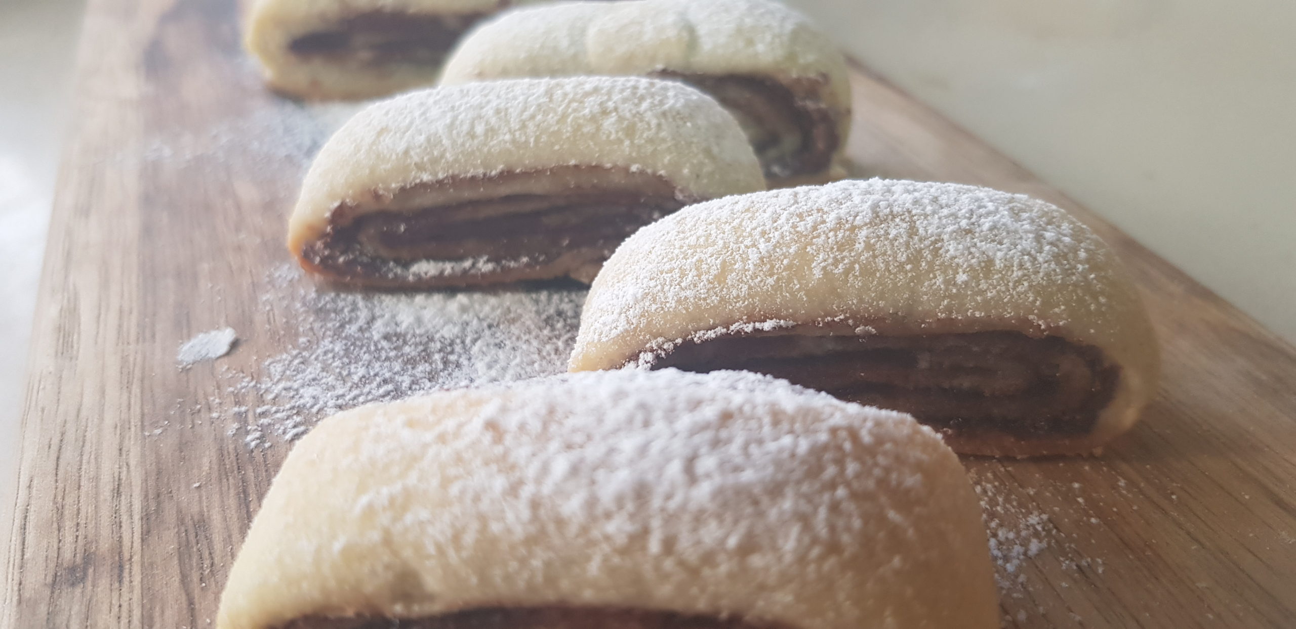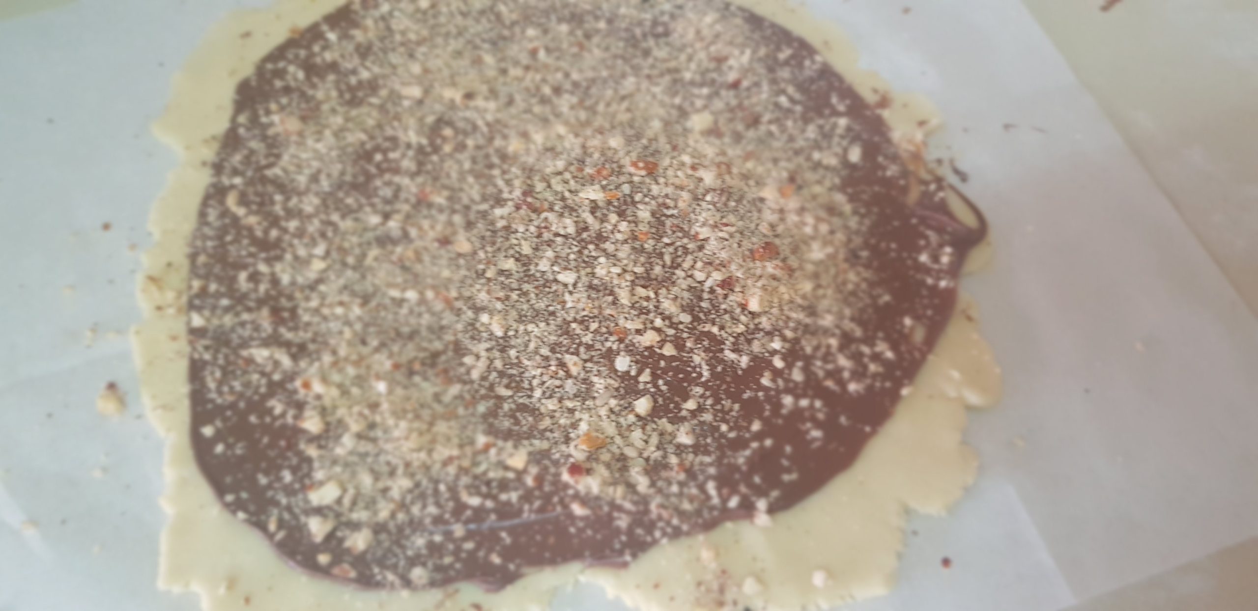 Chauffer un peu de Nutella et ajouter les noisettes et étaler sur la pate et rouler.