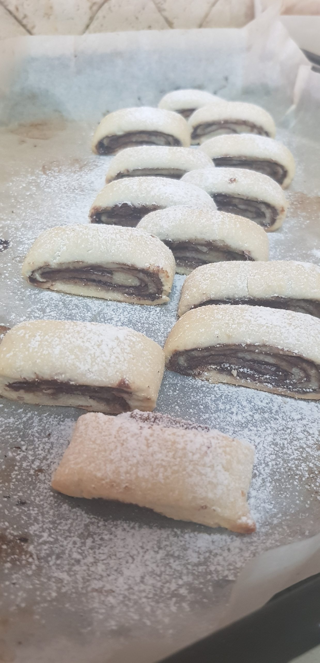 Cuire dans un four préchauffé à 180 degrés jusqu’à ce qu’ils soient dorés. Parsemé de sucre glace !