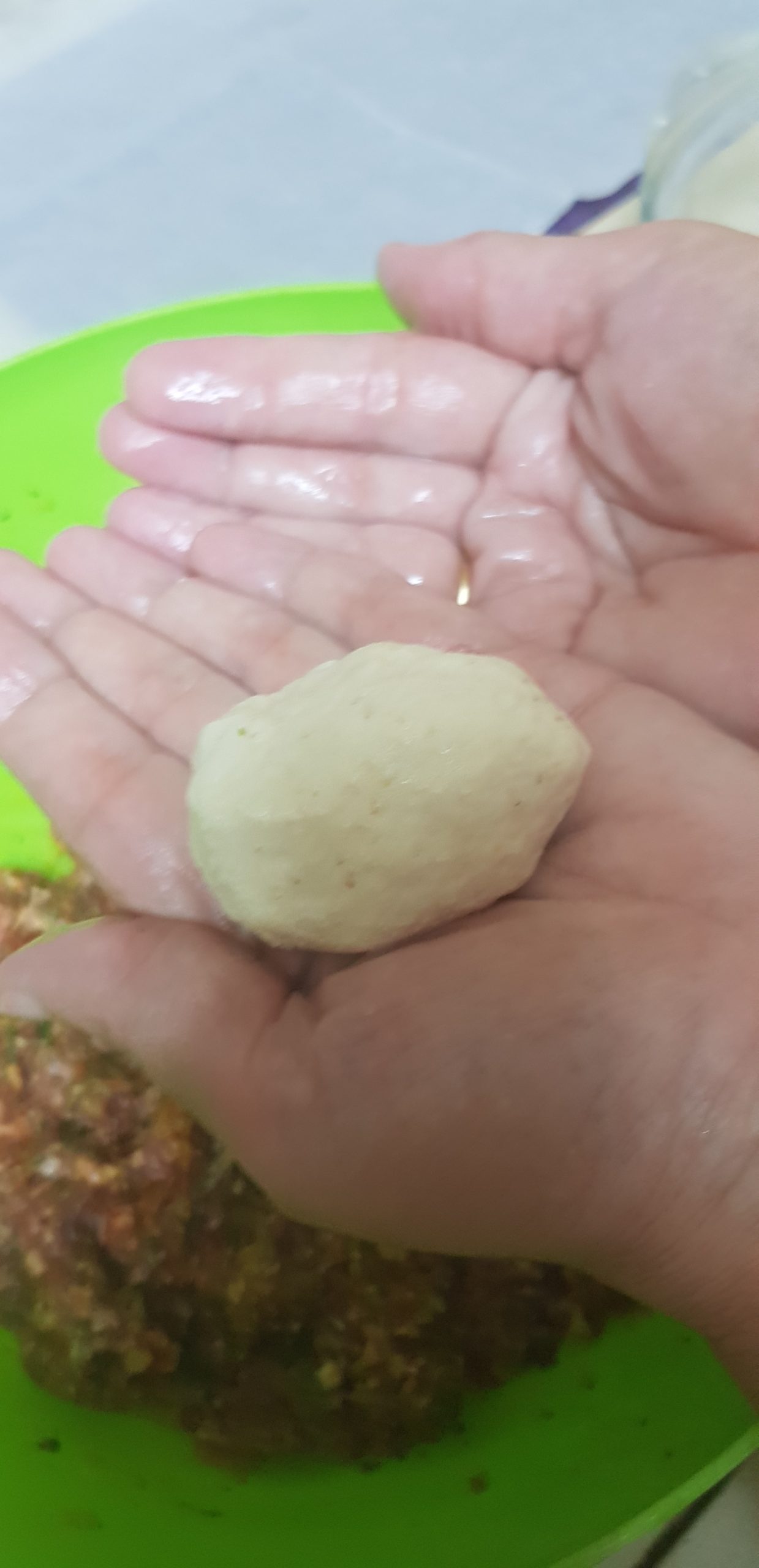 Façonner les boules de kubbeh : avec les mains mouillées, prendre une petite boule de la pâte, aplatir chaque boule, en plaçant 1 à 2 cuillères à soupe du mélange de viande au centre et en refermant la pâte autour de la viande. Disposez toutes les boules de kubbeh sur un plateau. À ce stade, vous pouvez congeler certaines des balles pour la prochaine fois.