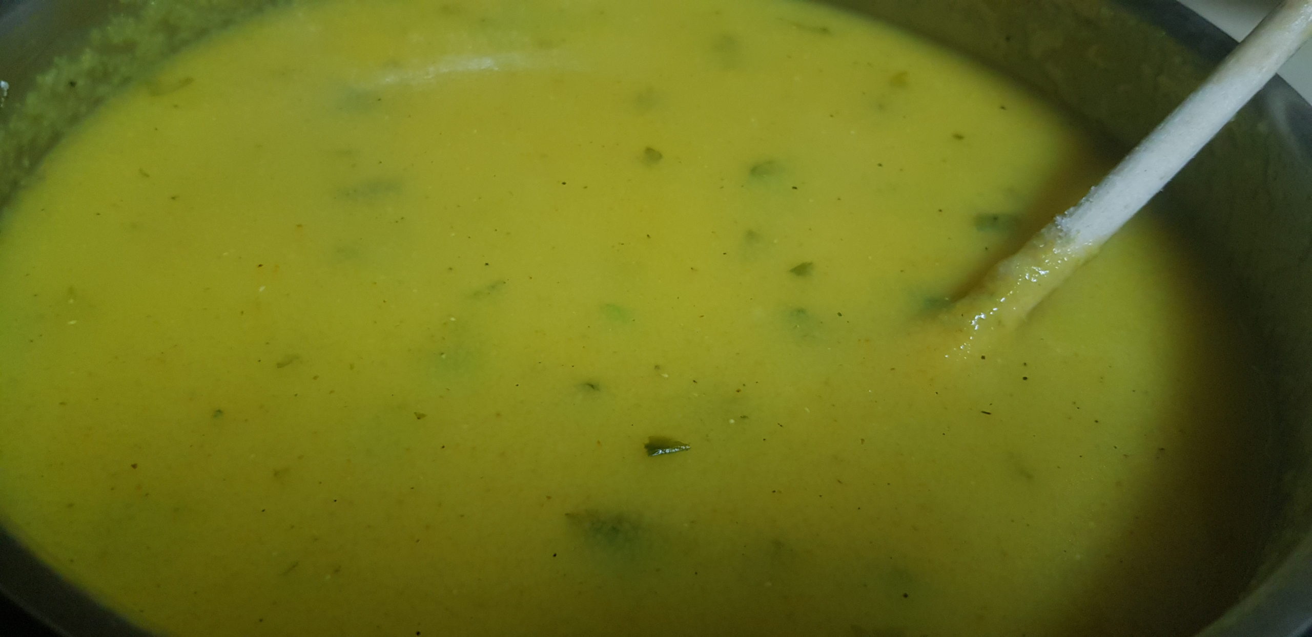 La soupe doit cuire pendant 20 minutes et assurez-vous d’ajouter de l’eau si vous voyez qu’elle devient trop épaisse car sinon, ce n’est pas agréable !.