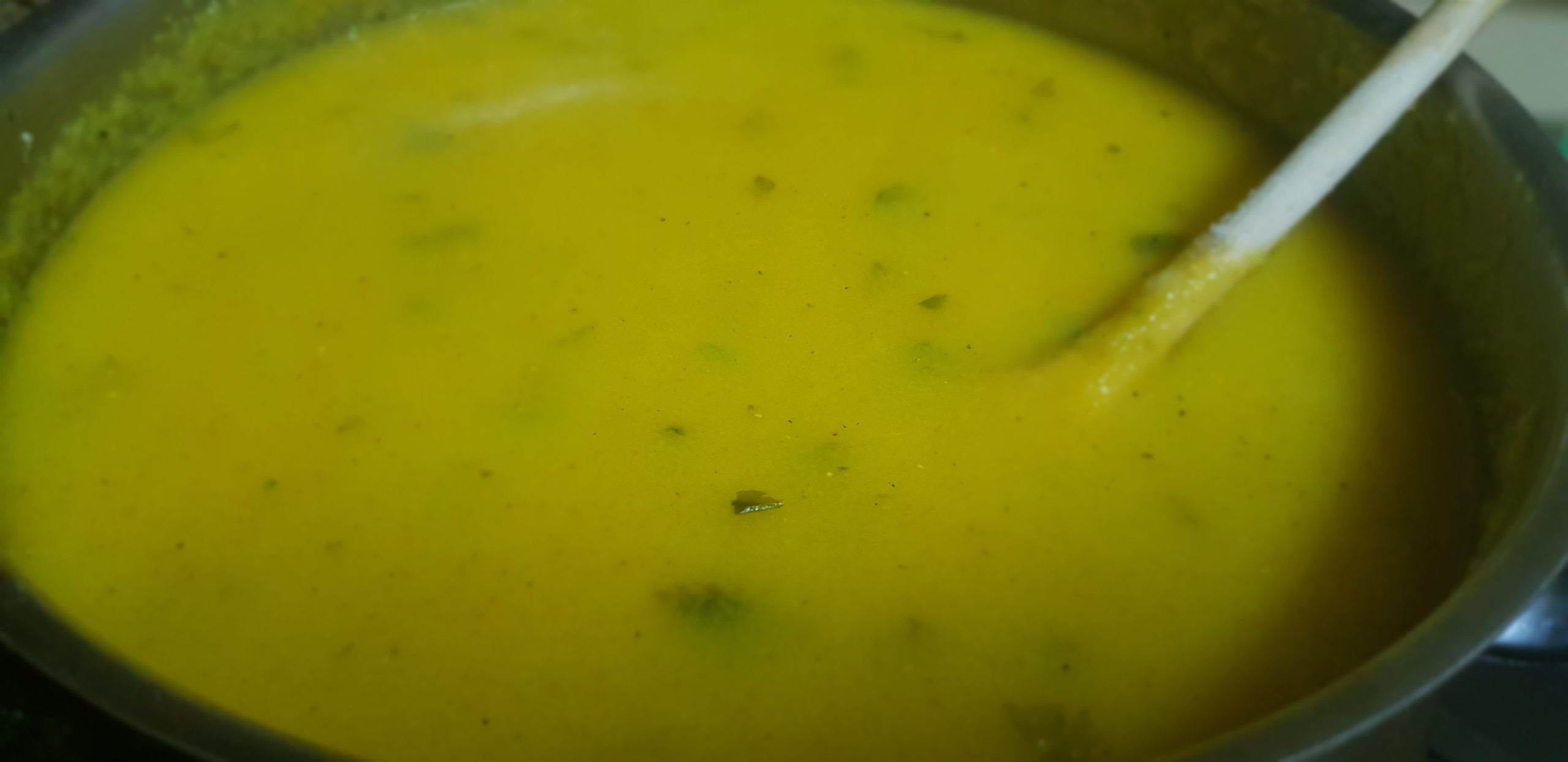 Le secret est de bien mélanger, cela signifie rester près de la marmite et remuer tout le temps, mais ce n’est pas grave si vous mélangez toutes les deux minutes. Assurez-vous de remuer dans tous les coins de la marmite. Avez-vous remarqué des grumeaux qui se sont formés, prenez une cuillère en métal perforée, mettez-y les grumeaux et avec une cuillère ordinaire, écrasez-les à travers les trous et hop, plus de grumeaux !
