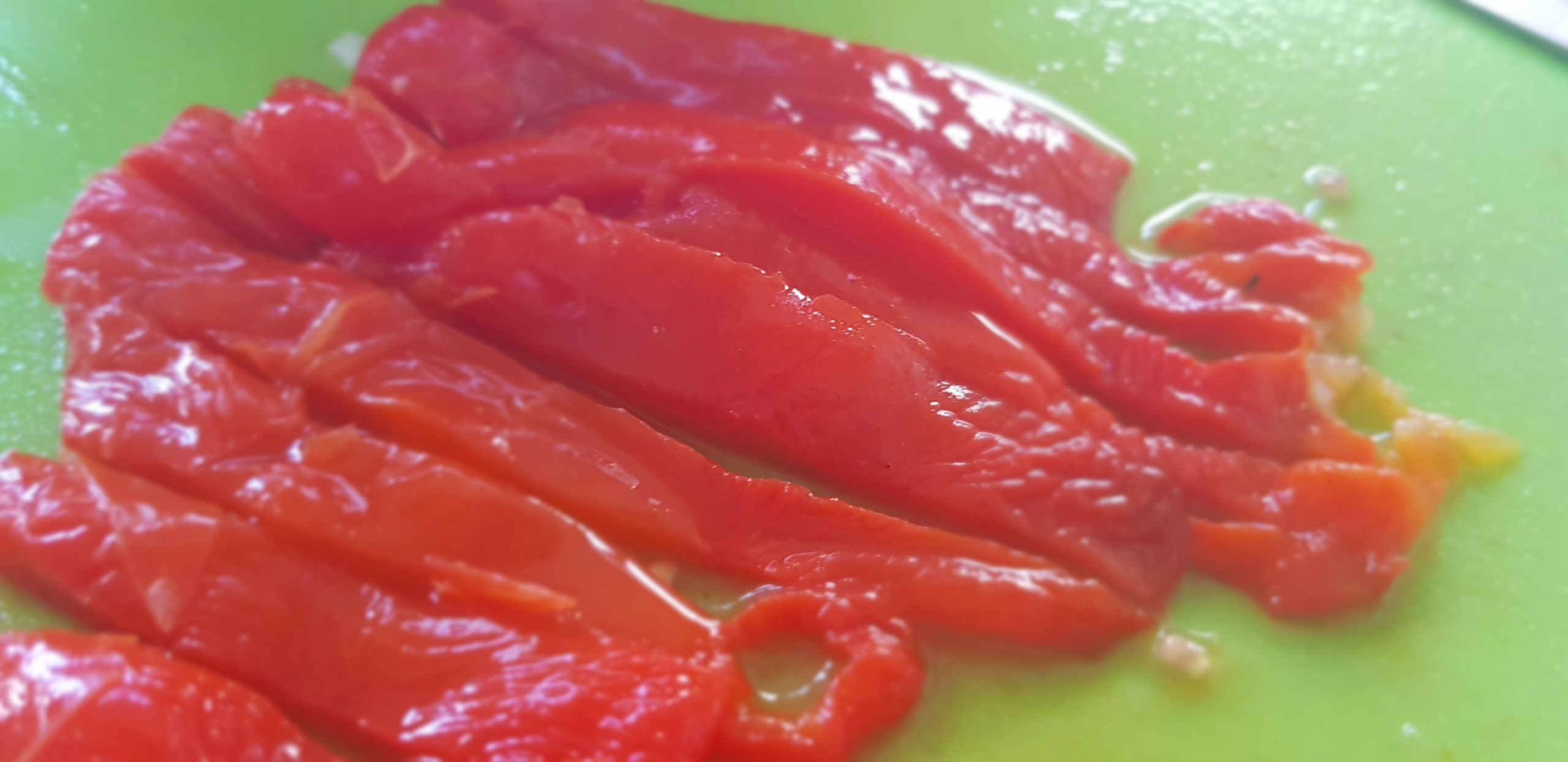 8 – Puis les poivrons grillés et débarrassés de leur peau.