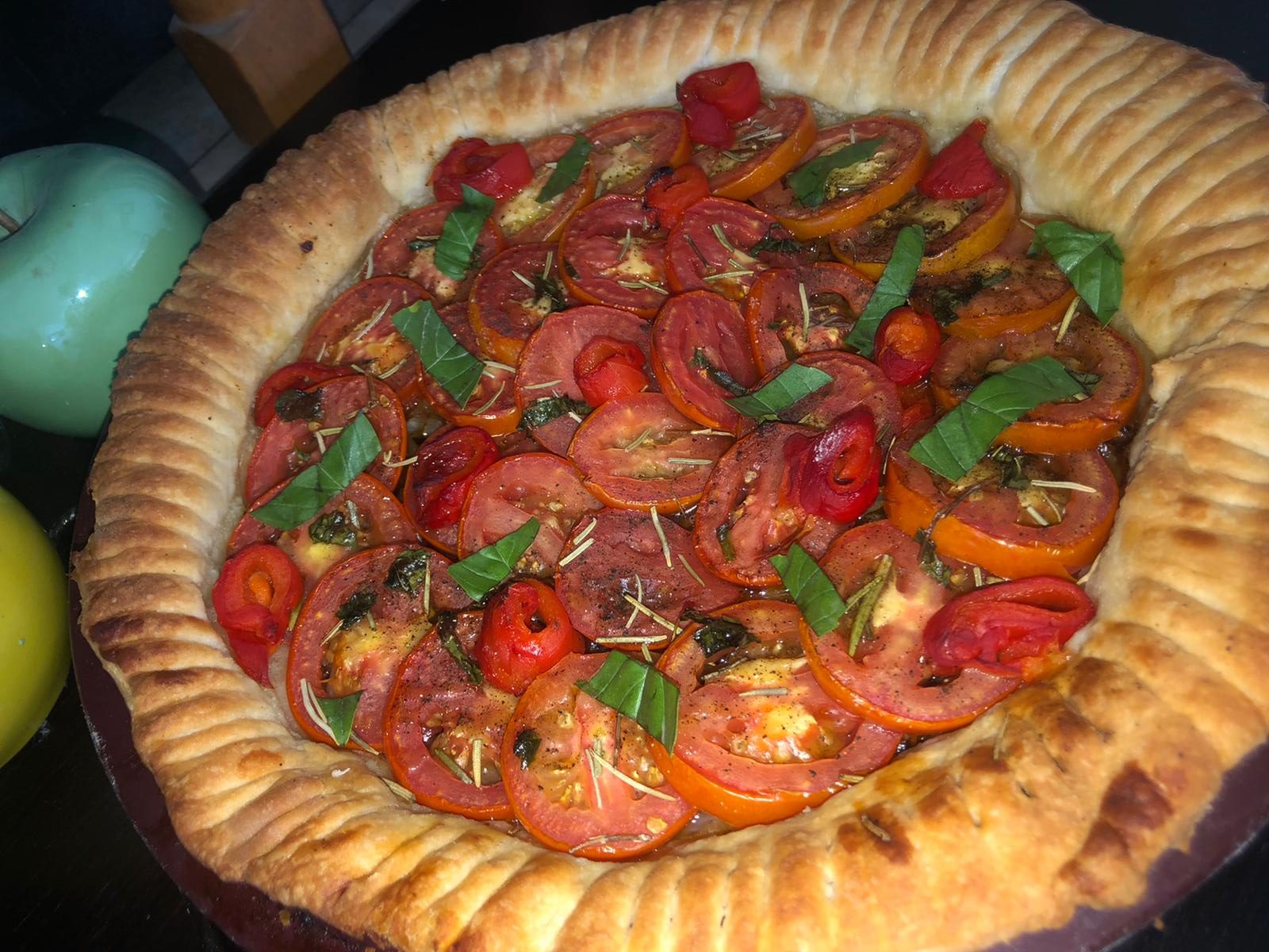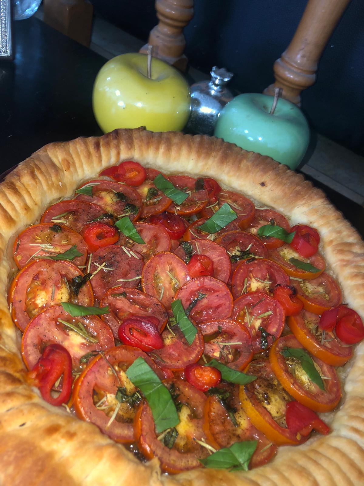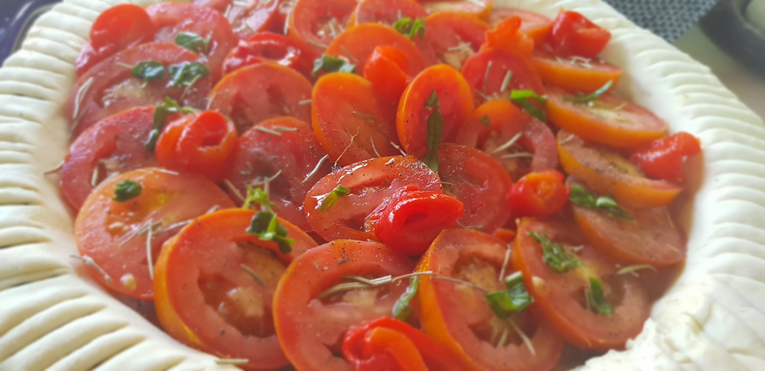 5 – Coupez les tomates en tranches fines et les disposez en rosace