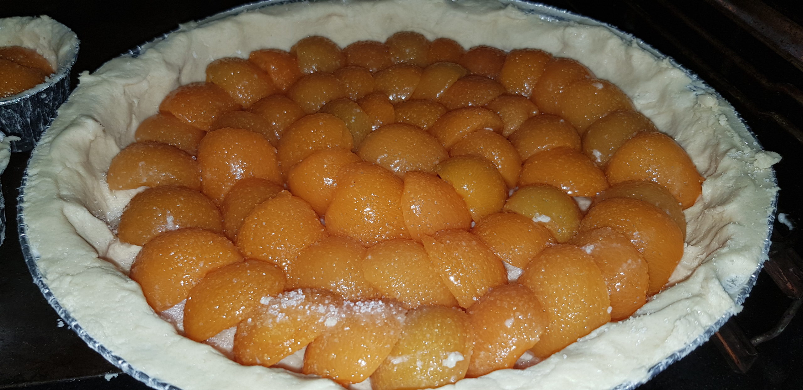 250 gr de confiture d’abricots (dont 100 gr pour le dessus de la tarte)