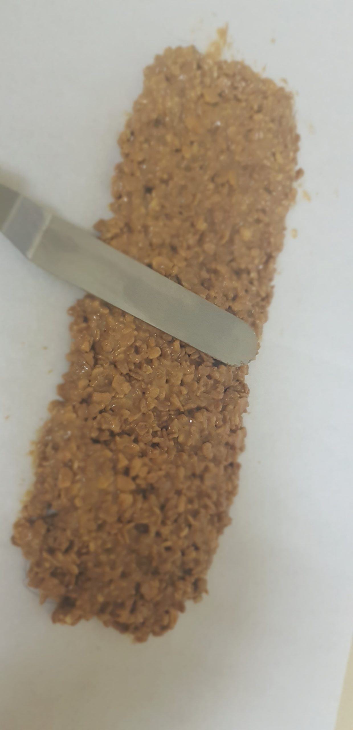 Rassembler tous les ingrédients pour constituer cette base de biscuit croustillant pour fond de gâteau et entremet dans un bol et mélanger doucement à la spatule jusqu’à obtenir une pâte homogène.
