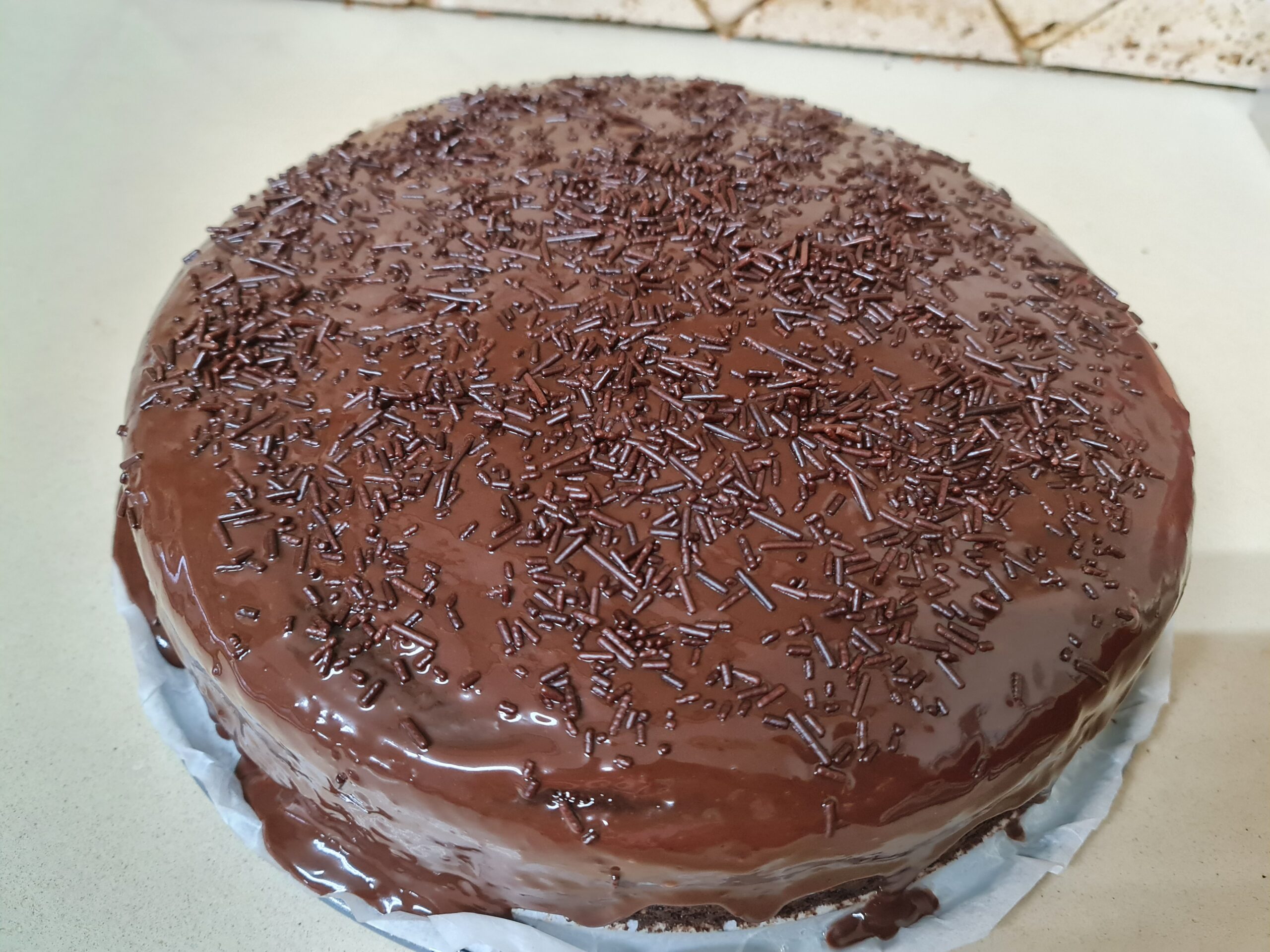 Verser la ganache sur le gâteau et décorer avec de la noix de coco ou des bonbons