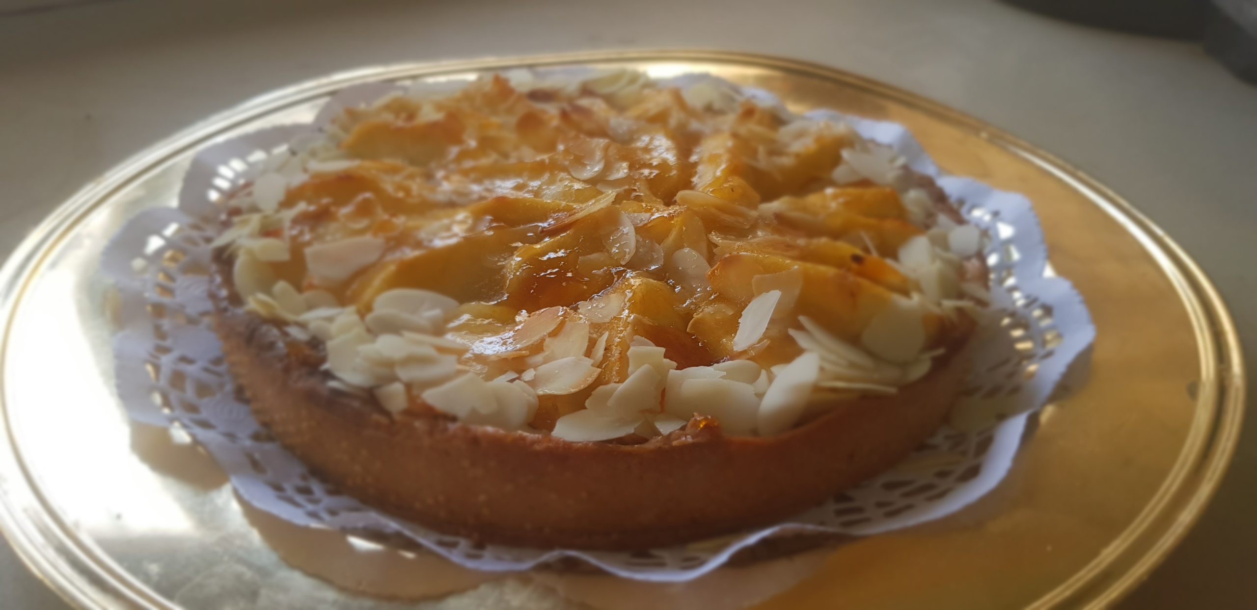 Foncer un cercle de pâte sucrée aux amandes (moi je le fait avec les doigts car la pâte est très fragile) . Passer la bordure à la pince et sucrer légèrement le fond de la tarte. On peut également ajouter des haricots pour que la pate ne gonfle pas. Faire cuire (190 degrés, pendant 15 minutes) la tarte en bas du four jusqu’au blanchiment en vérifiant que le font de la tarte soit doré . Mettre de côté sans oublier d’enlever les haricots.